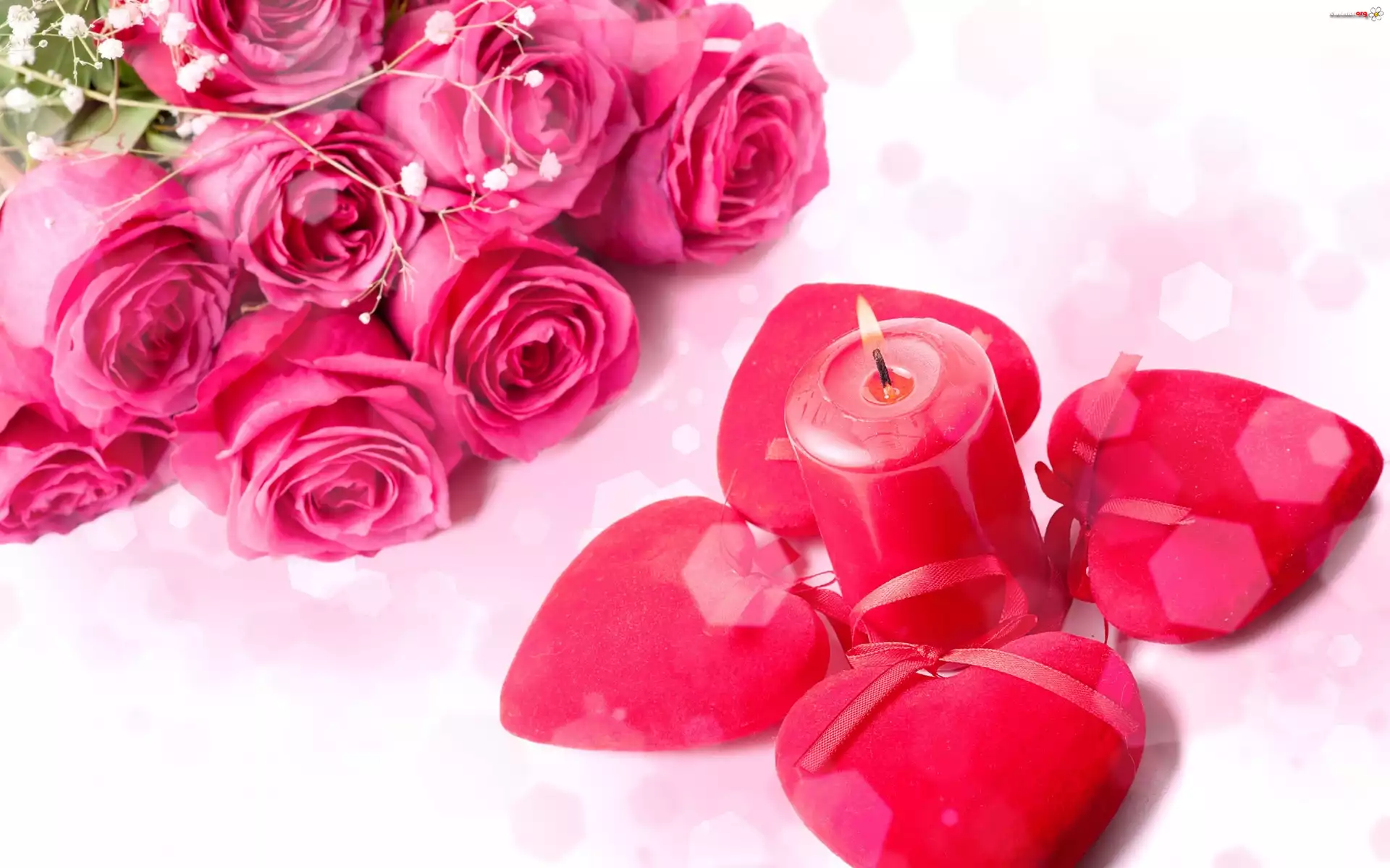 Kwiat Walentynki, Róże, Świeca, Romantyzm