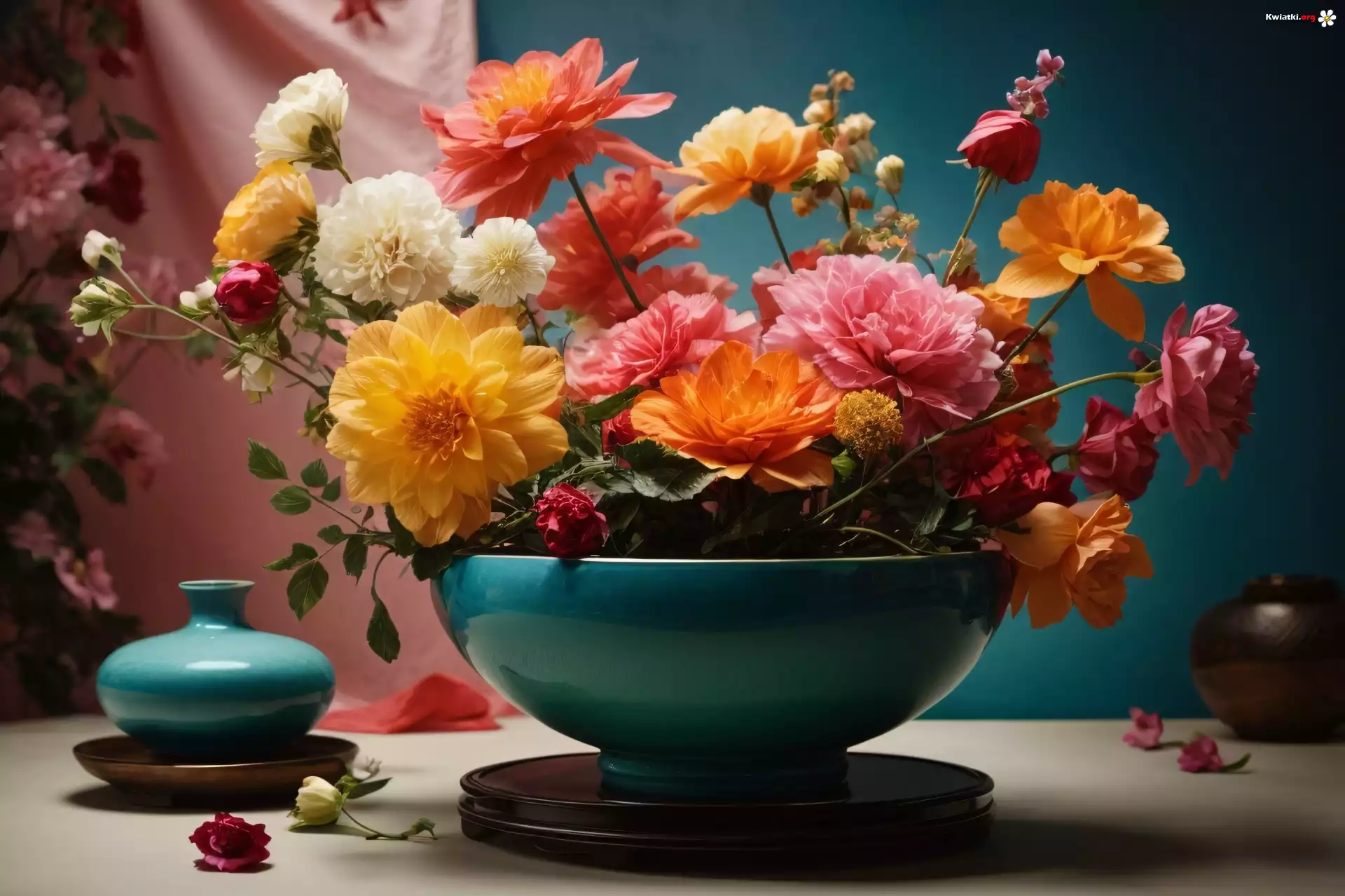 Kwiat Kwiaty, Kolorowe, Bukiet, Waza