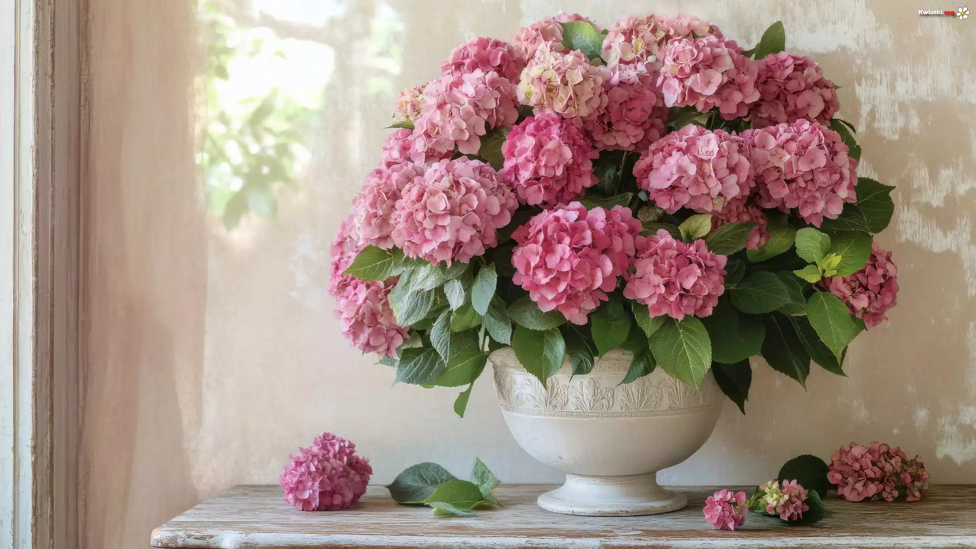 Kwiaty, Różowe, Hortensje, Waza - Zdjęcia