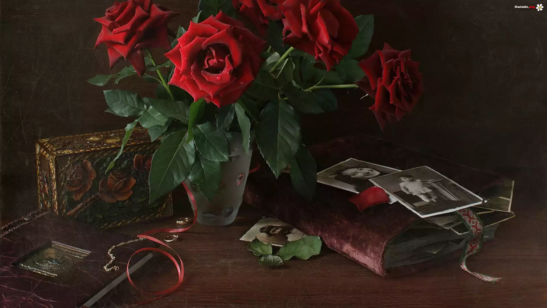 Kwiat Wazon, Czerwone, Róże, Stare, Albumy, Zdjęcia