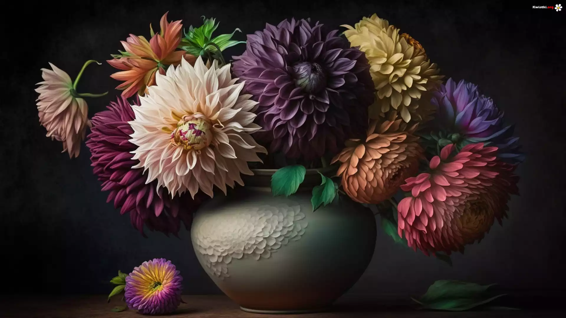 Kwiaty, Kolorowe, Dalie, Wazon, Drewniany, Stół, Grafika - Zdjęcia