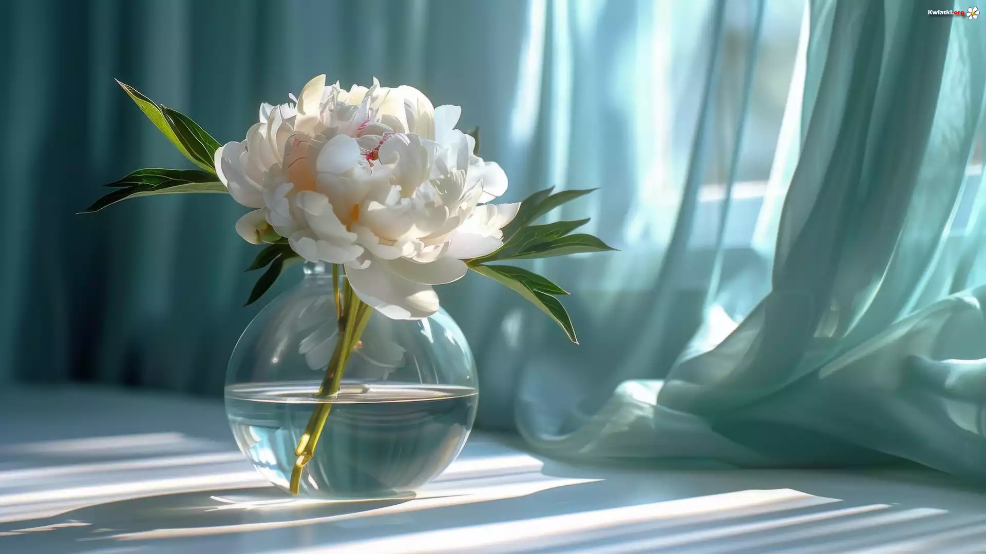 Kwiat, Piwonia, Biała, Wazon, Okno, Firanka - Zdjęcia