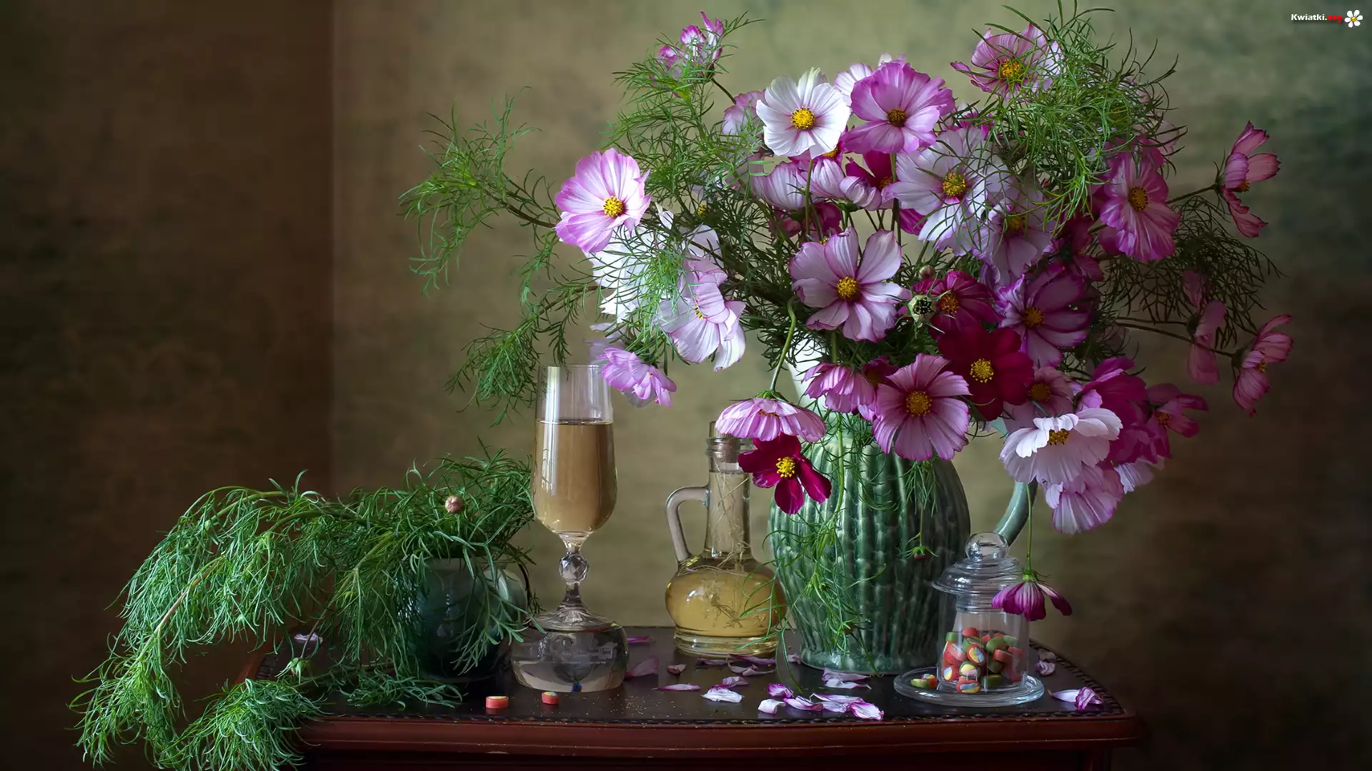 Wazon, Kwiaty, Kosmea, Kieliszek, Kompozycja - Zdjęcia