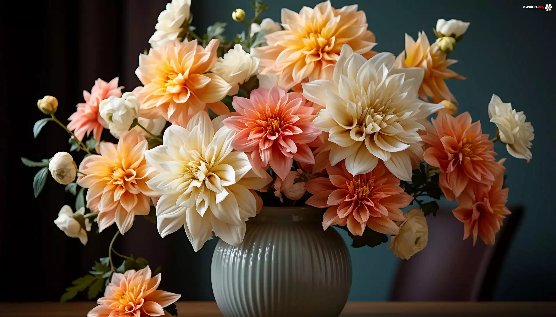 Kwiaty, Bukiet, Dalie, Wazon - Zdjęcia