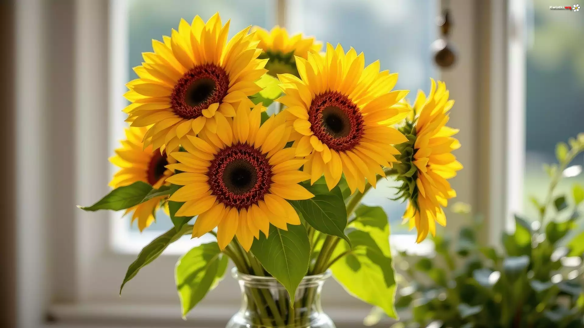 Kwiat Kwiaty, Bukiet, Słoneczniki, Wazon