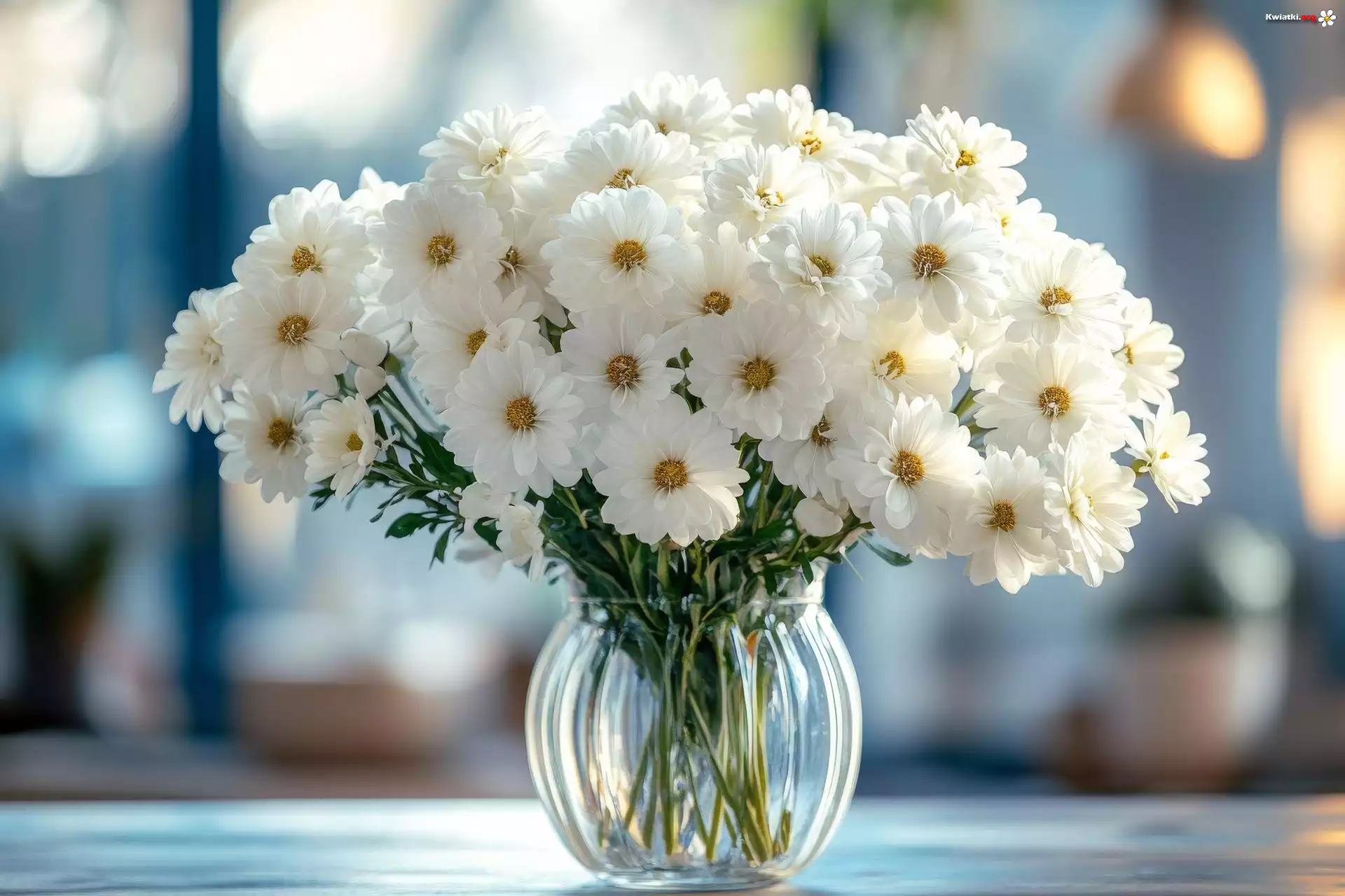Kwiaty, Białe, Szklany, Wazon - Zdjęcia