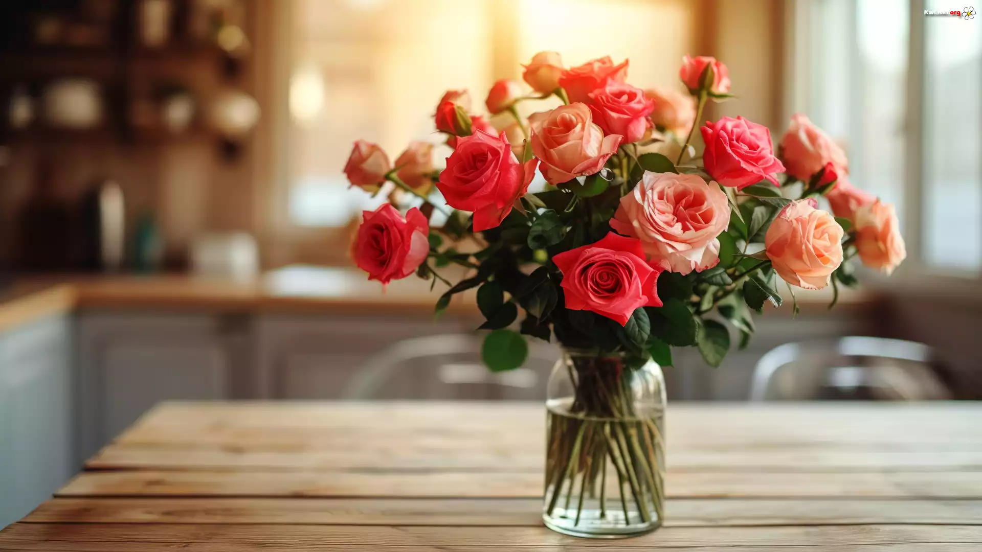 Kwiat Róże, Bukiet, Szklany, Wazon