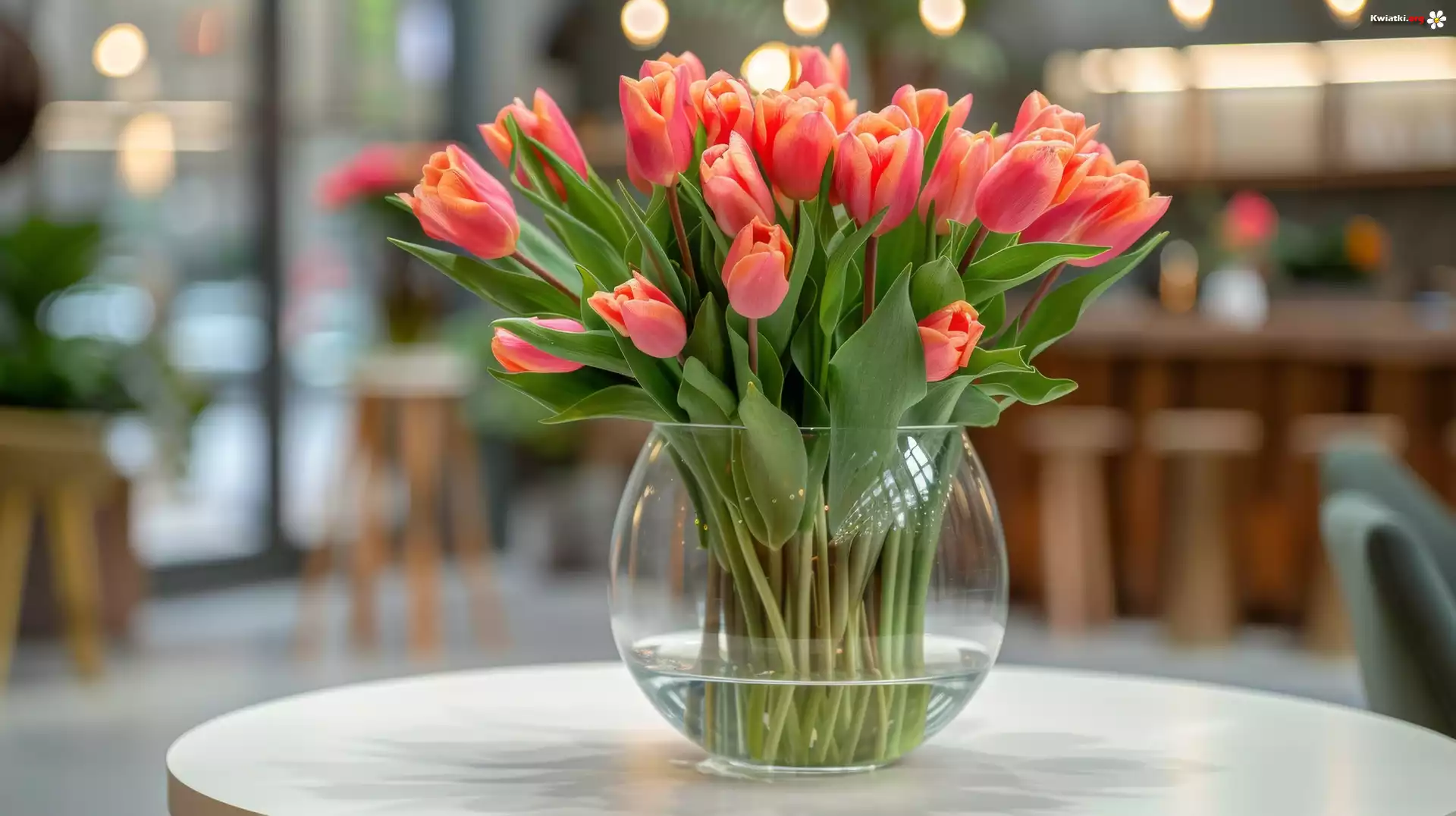 Różowe, Tulipany, Szklany, Wazon - Zdjęcia