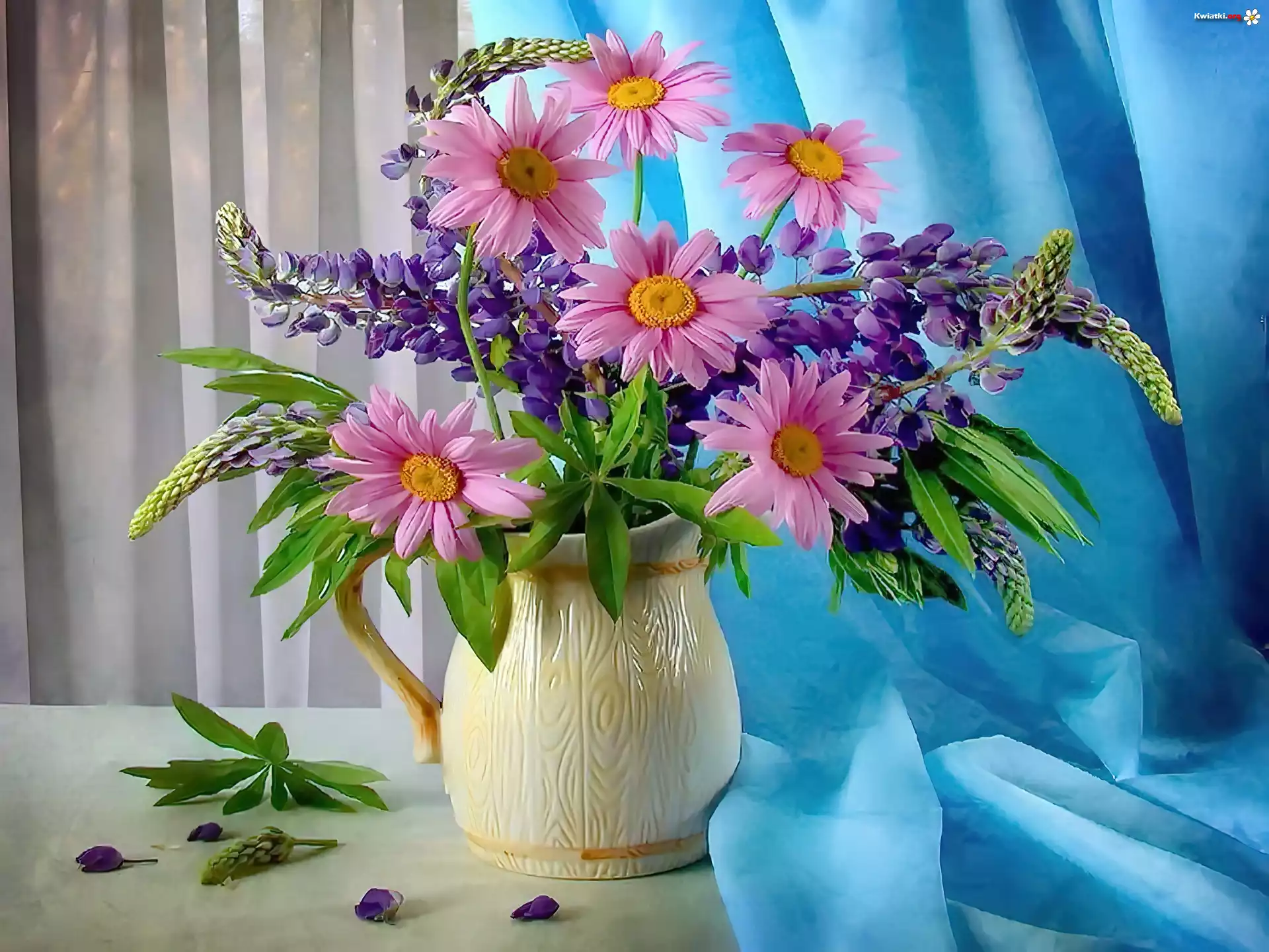 Wazon, Łubin, Różowe, Margerytki - Zdjęcia