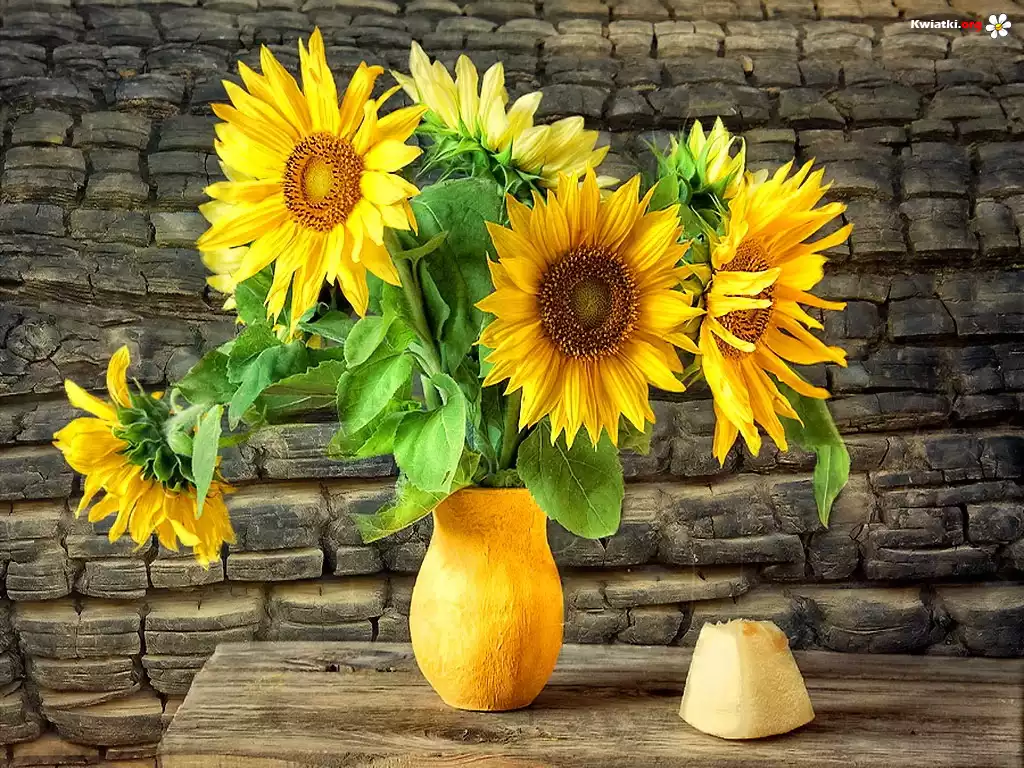 Słoneczniki, Wazon, Ściana - Zdjęcia
