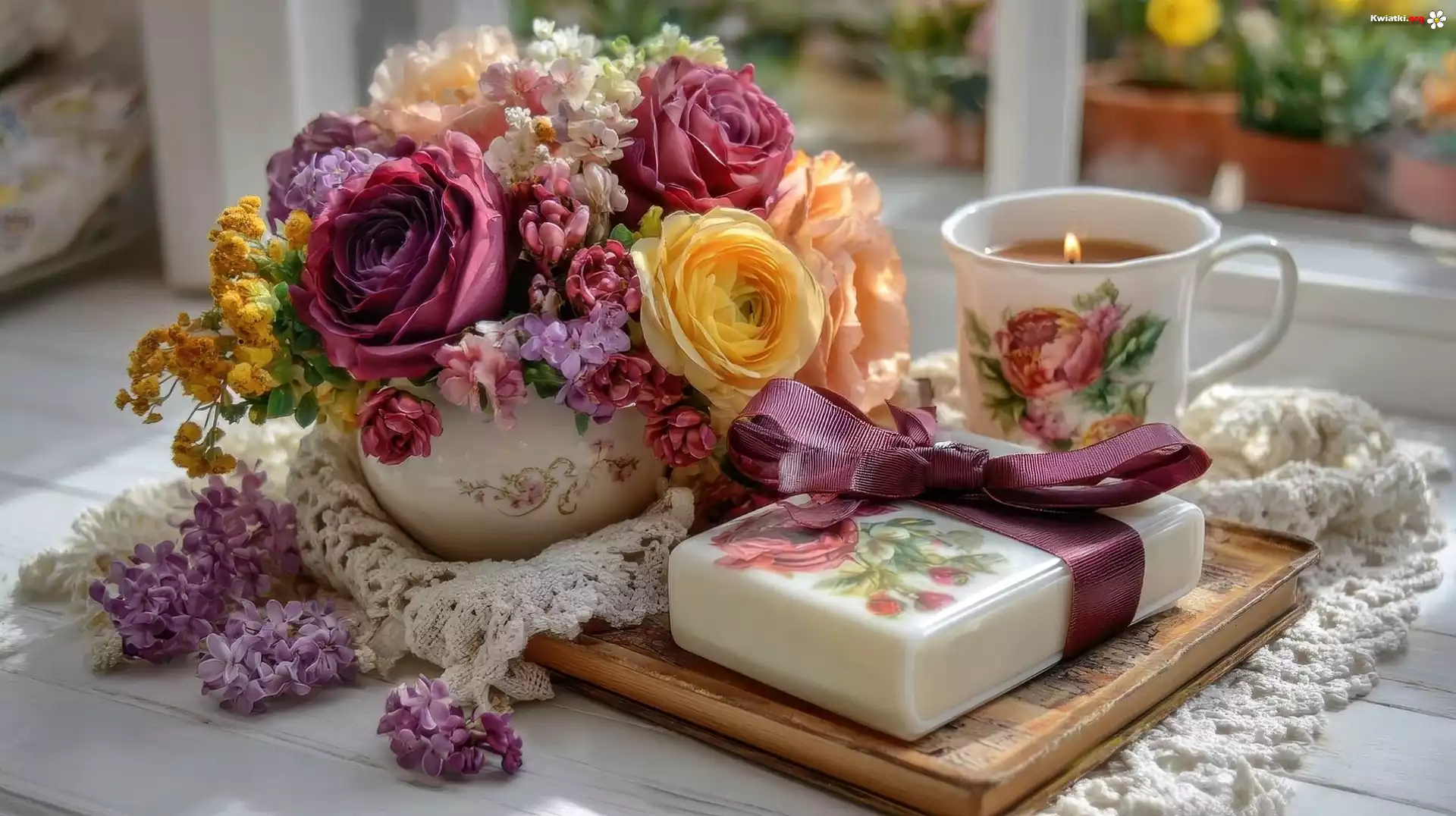 Kwiaty, Wazon, Świeca, Prezent, Kompozycja - Zdjęcia