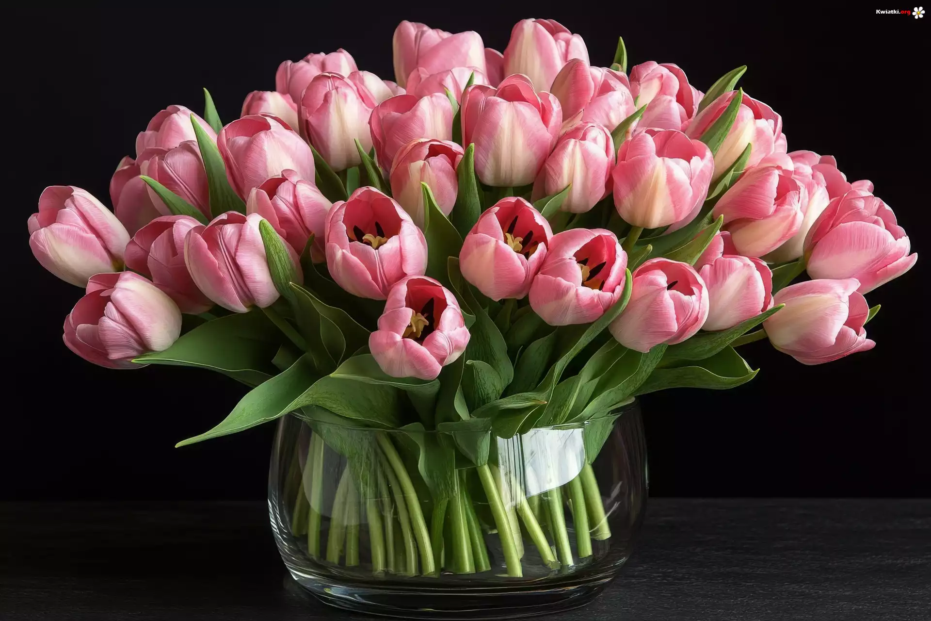 Różowe, Tulipany, Szklany, Wazon, Czarne, Tło - Zdjęcia