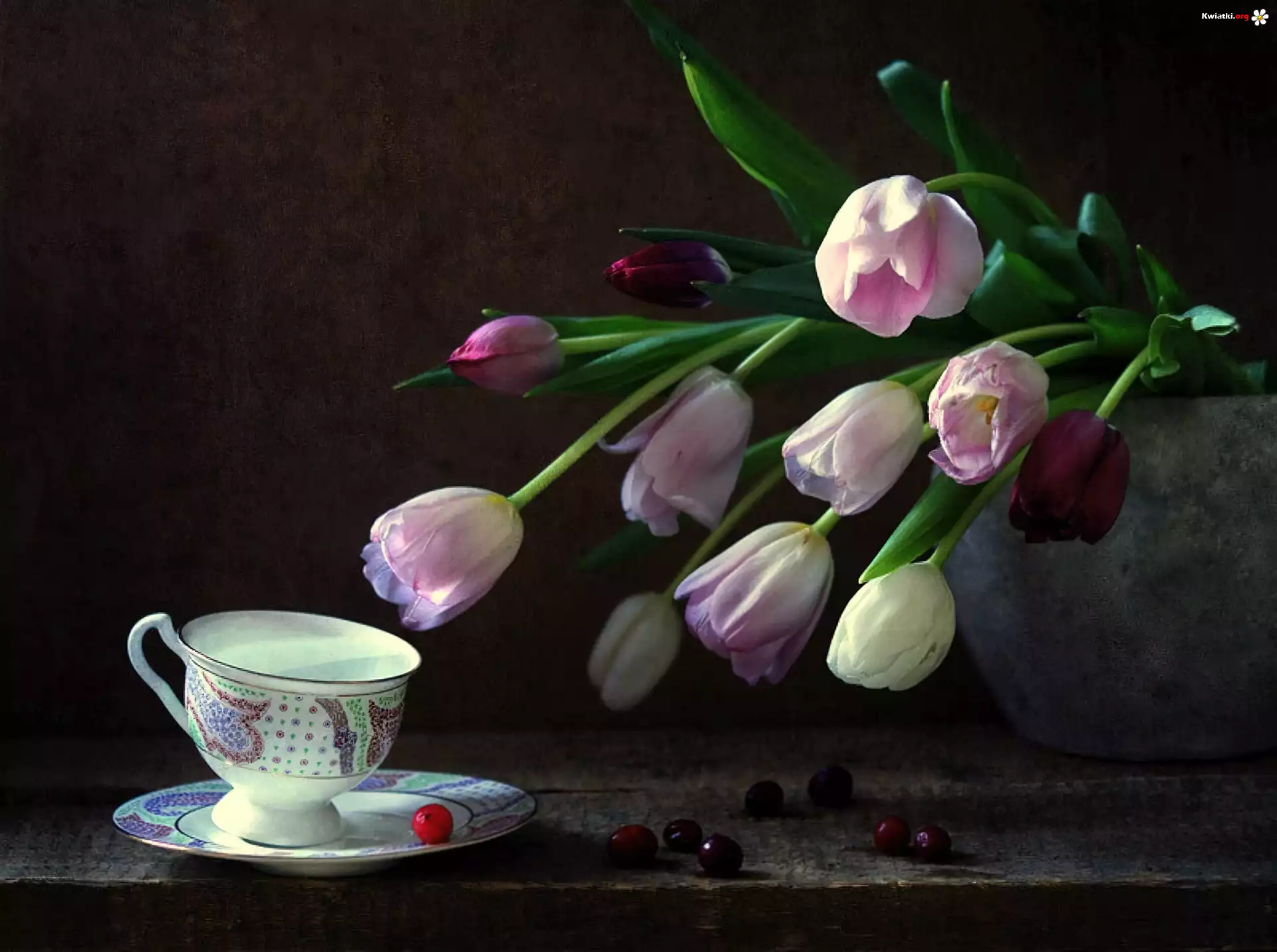 Tulipany, Wazon, Filiżanka - Zdjęcia