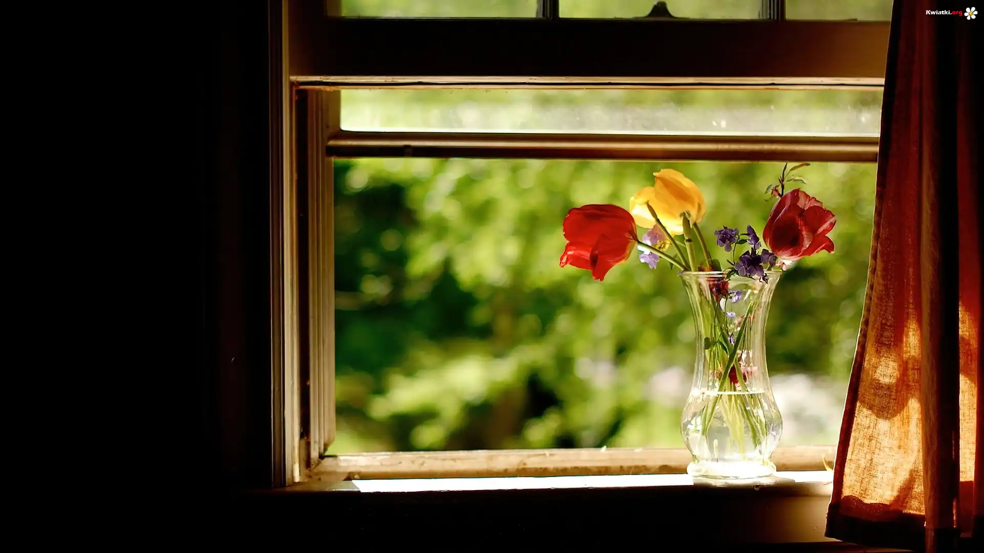 Kwiat Tulipany, Wazon, Okno