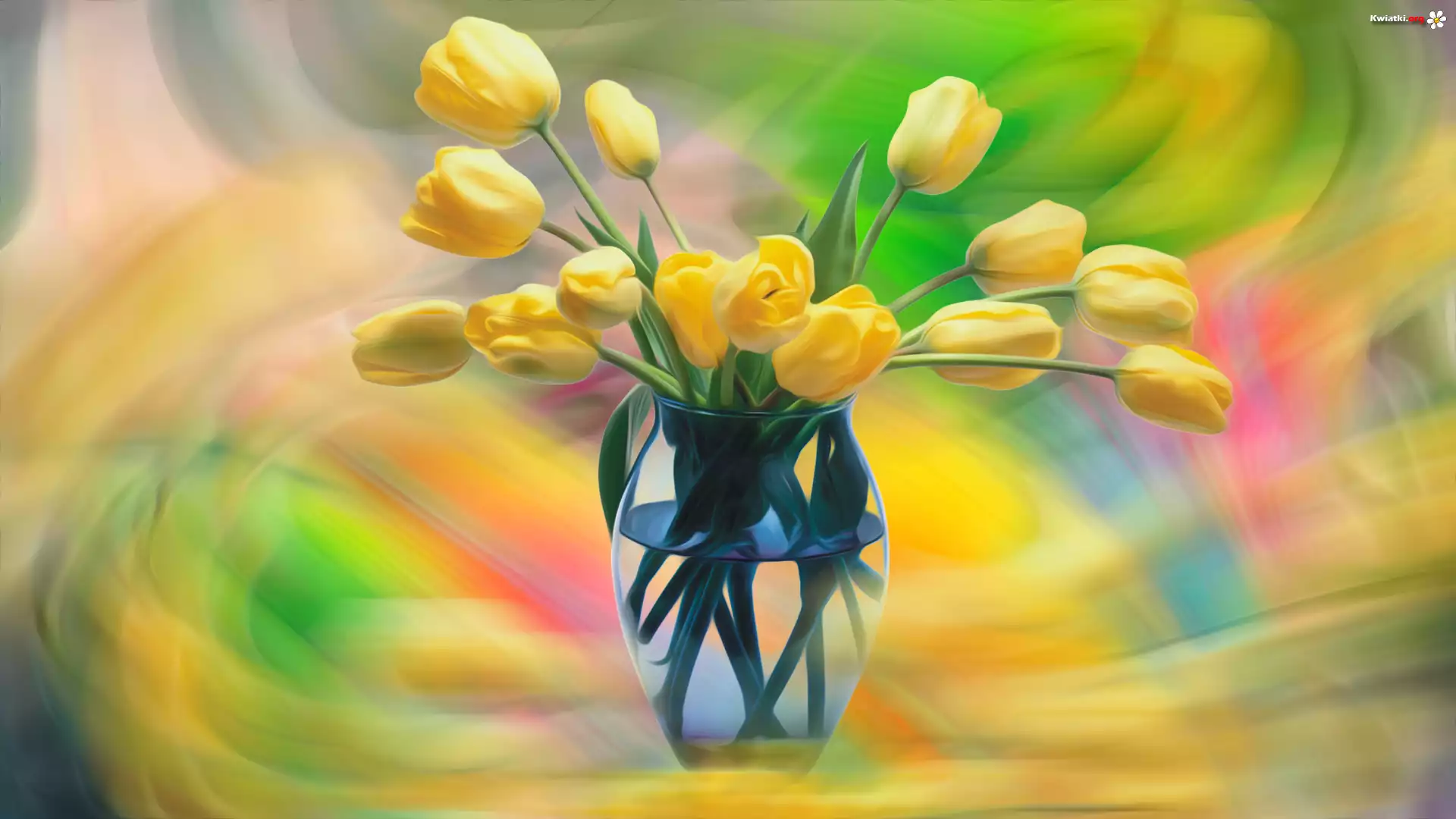 Żółte, Tulipany, Szklany, Wazon, Grafika - Zdjęcia