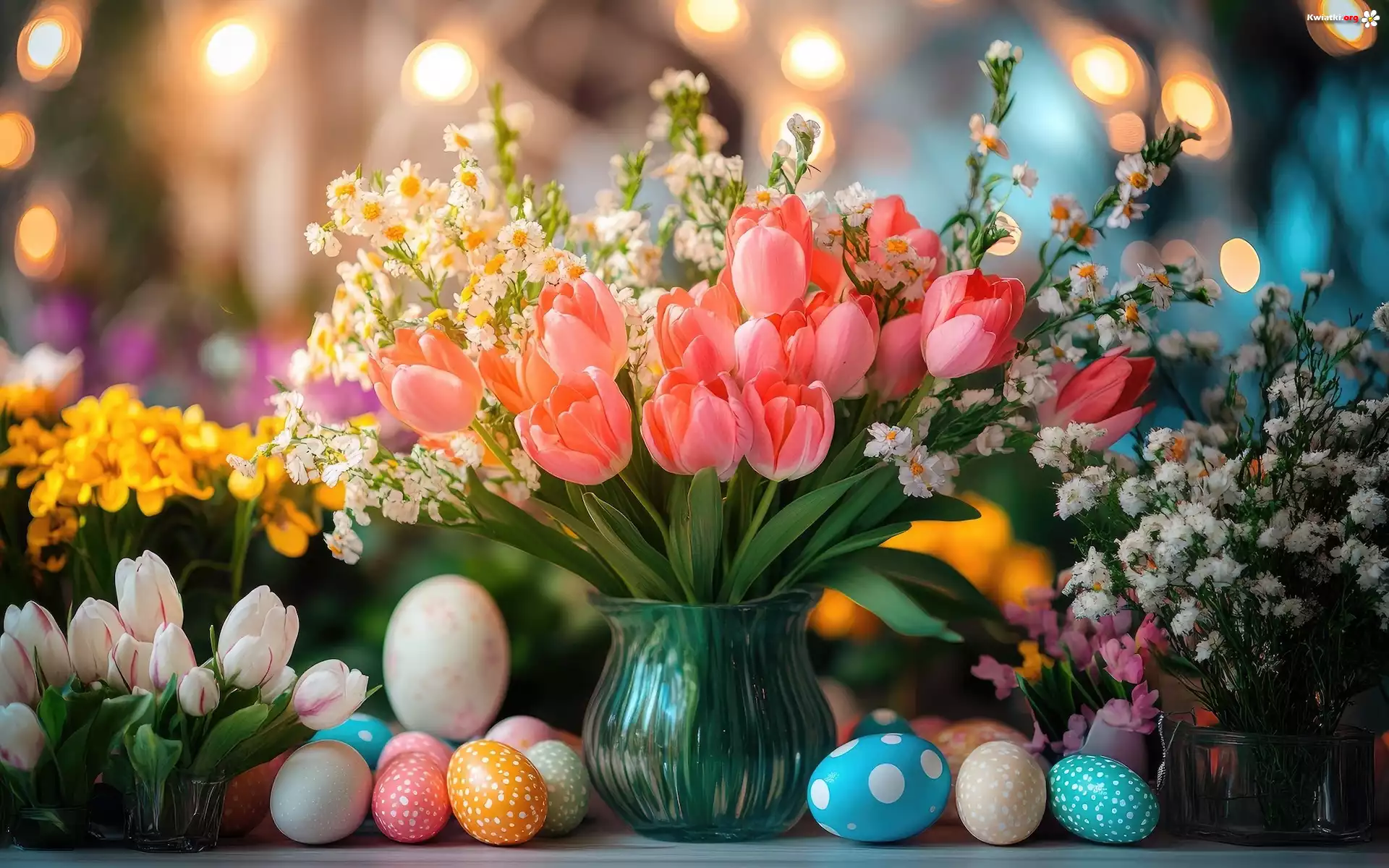 Bukiet kwiatów, Tulipany, Wazon, Pisanki, Wielkanoc - Zdjęcia