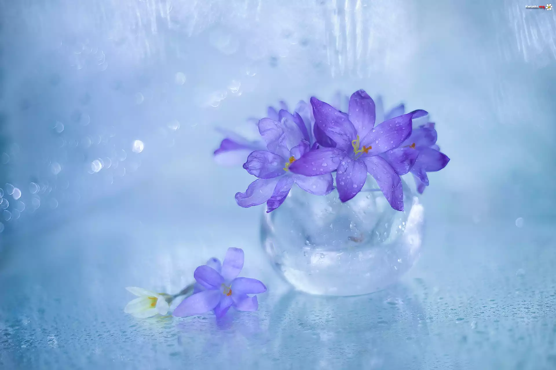 Kwiat Wazonik, Fioletowe, Krokusy, Kwiaty