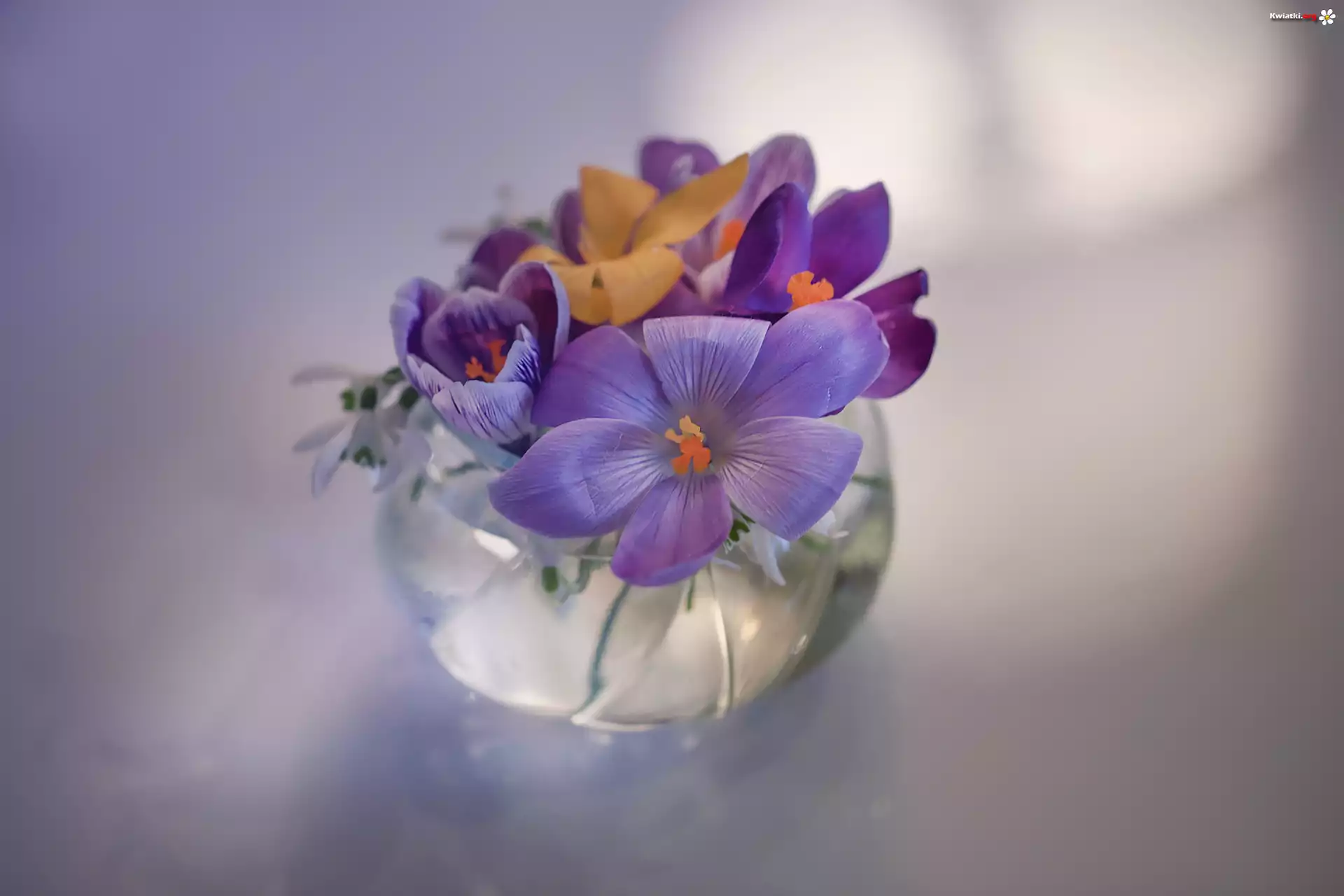 Krokusy, Kwiaty, Wiosna, Wazonik - Zdjęcia