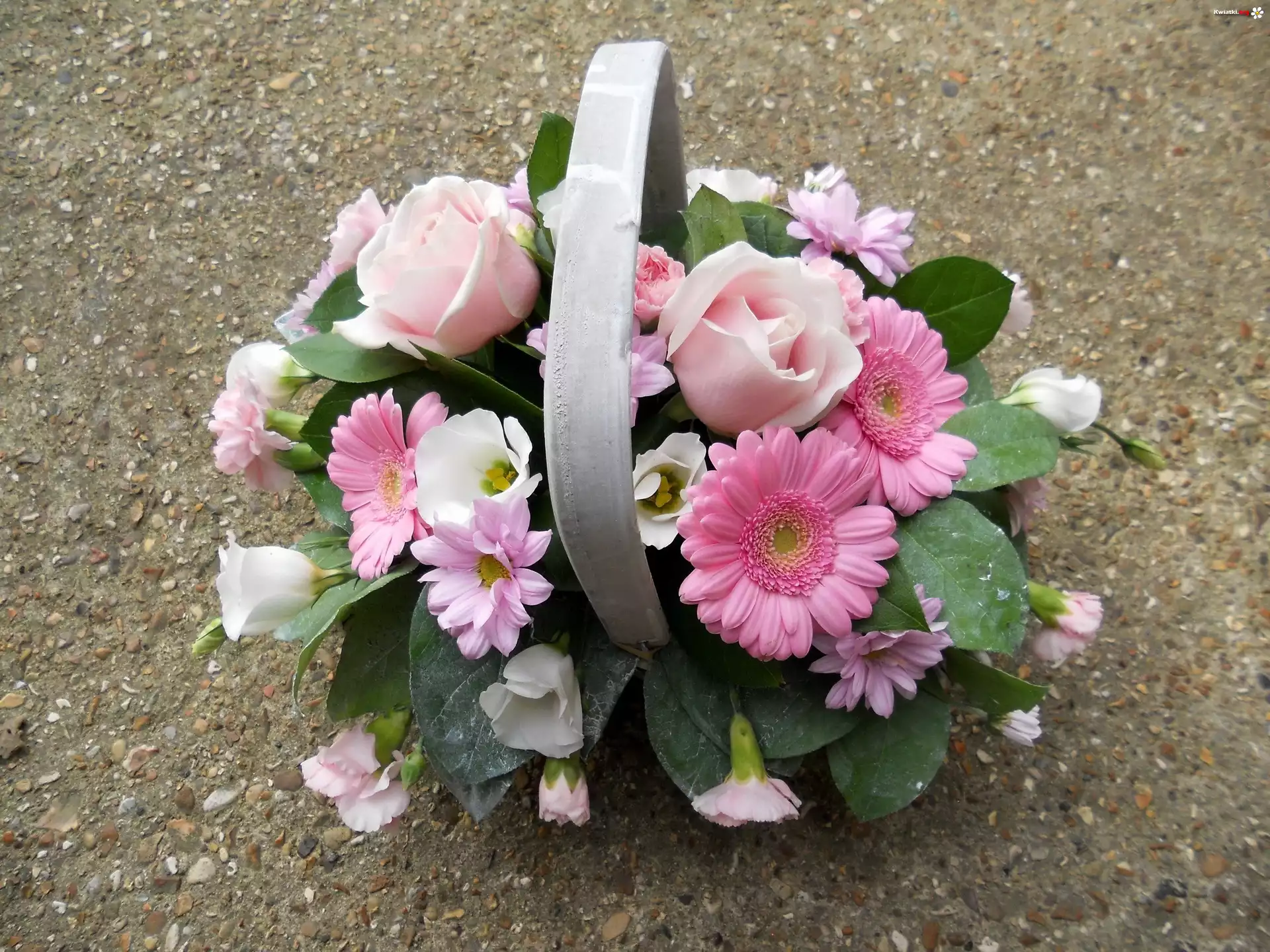 Wiązanka, Kwiatów, Gerbery, Róże - Zdjęcia