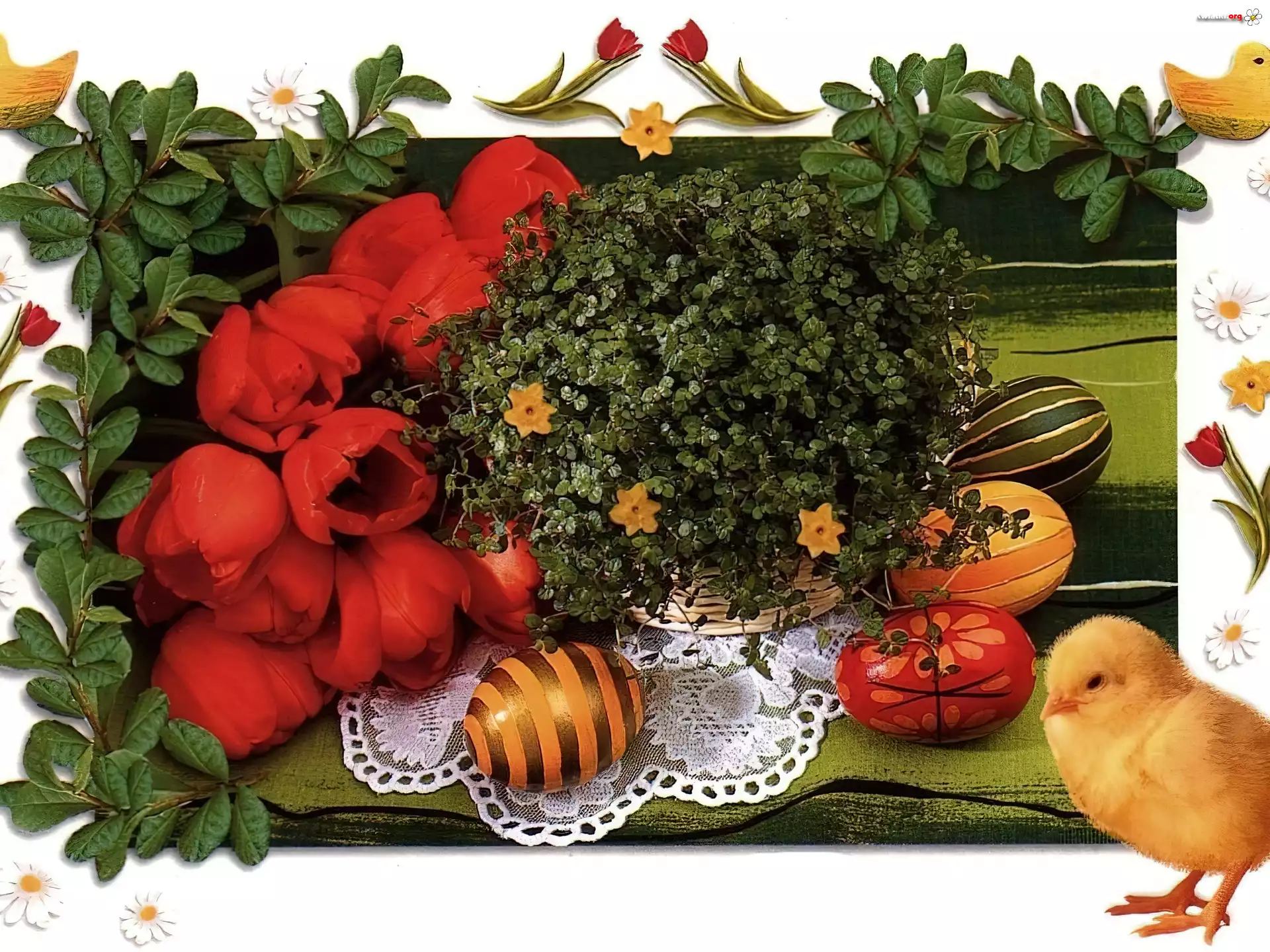Wielkanoc, Tulipany,jajeczka,kurczaczek - Zdjęcia