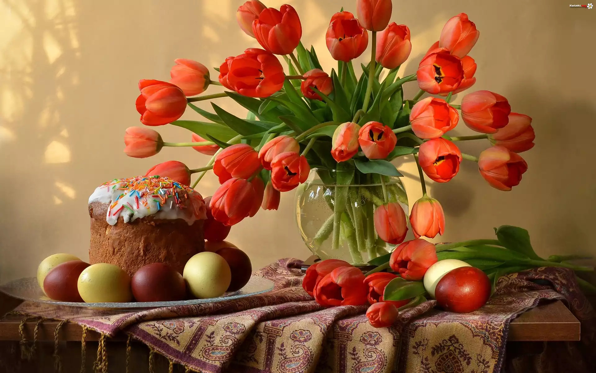Wielkanoc, Ciasto, Babka, Tulipany, Kolorowe, Jajka - Zdjęcia