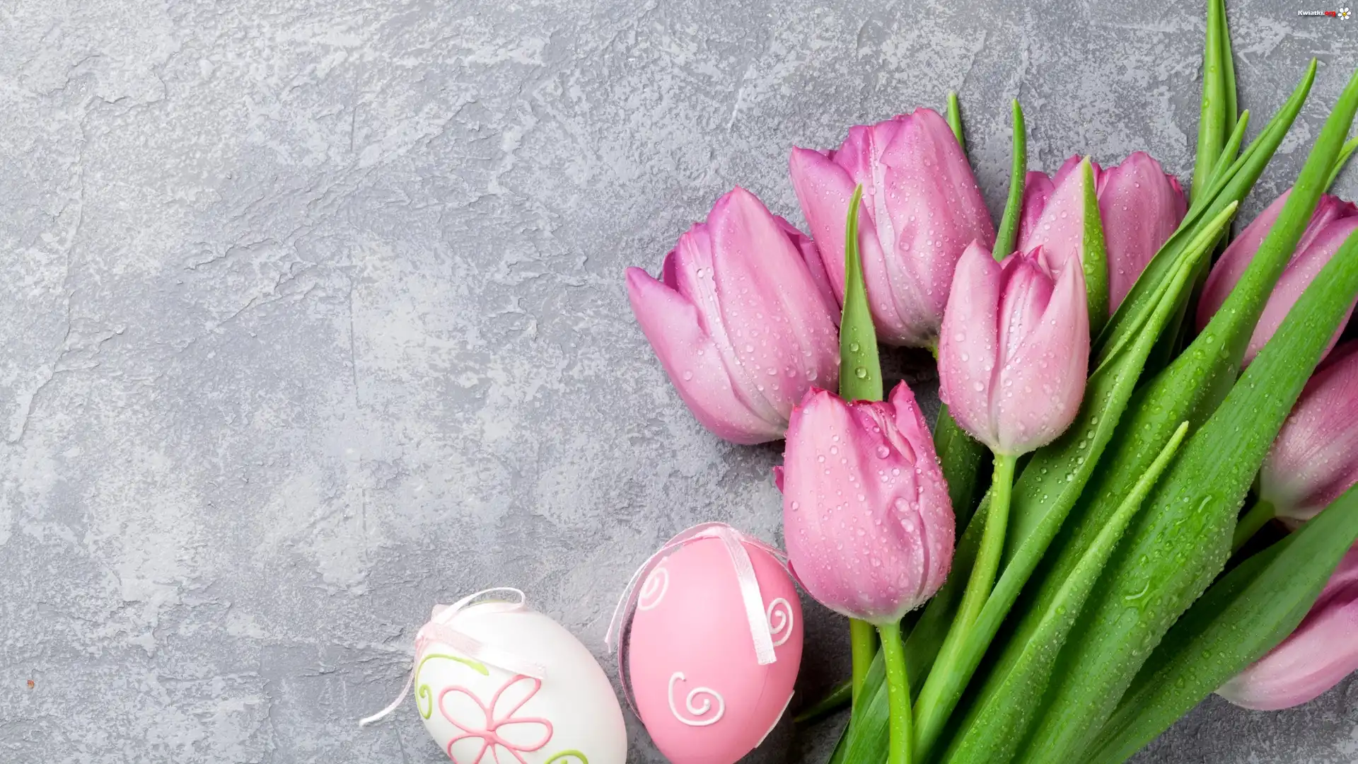 Kwiat Wielkanoc, Tulipany, Krople, Pisanki