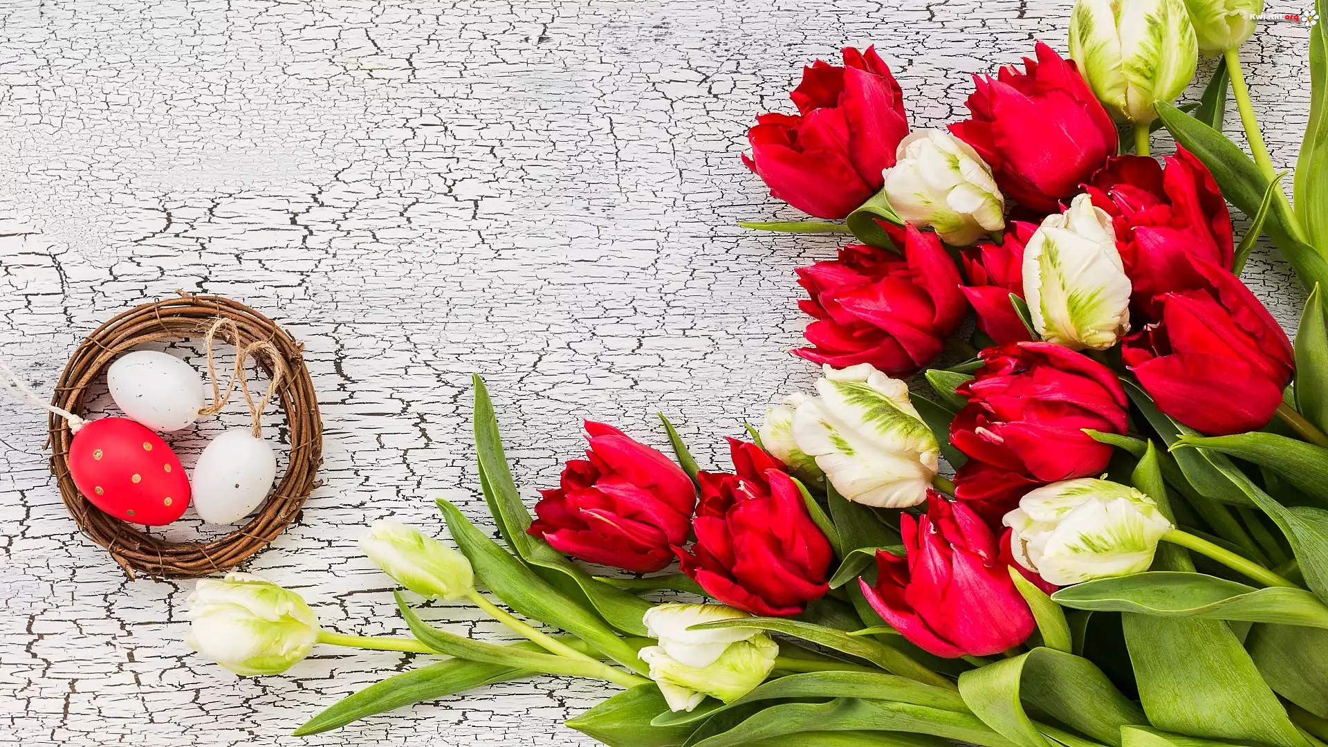 Kwiat Wielkanoc, Tulipany, Pisanki, Popękane, Drewno