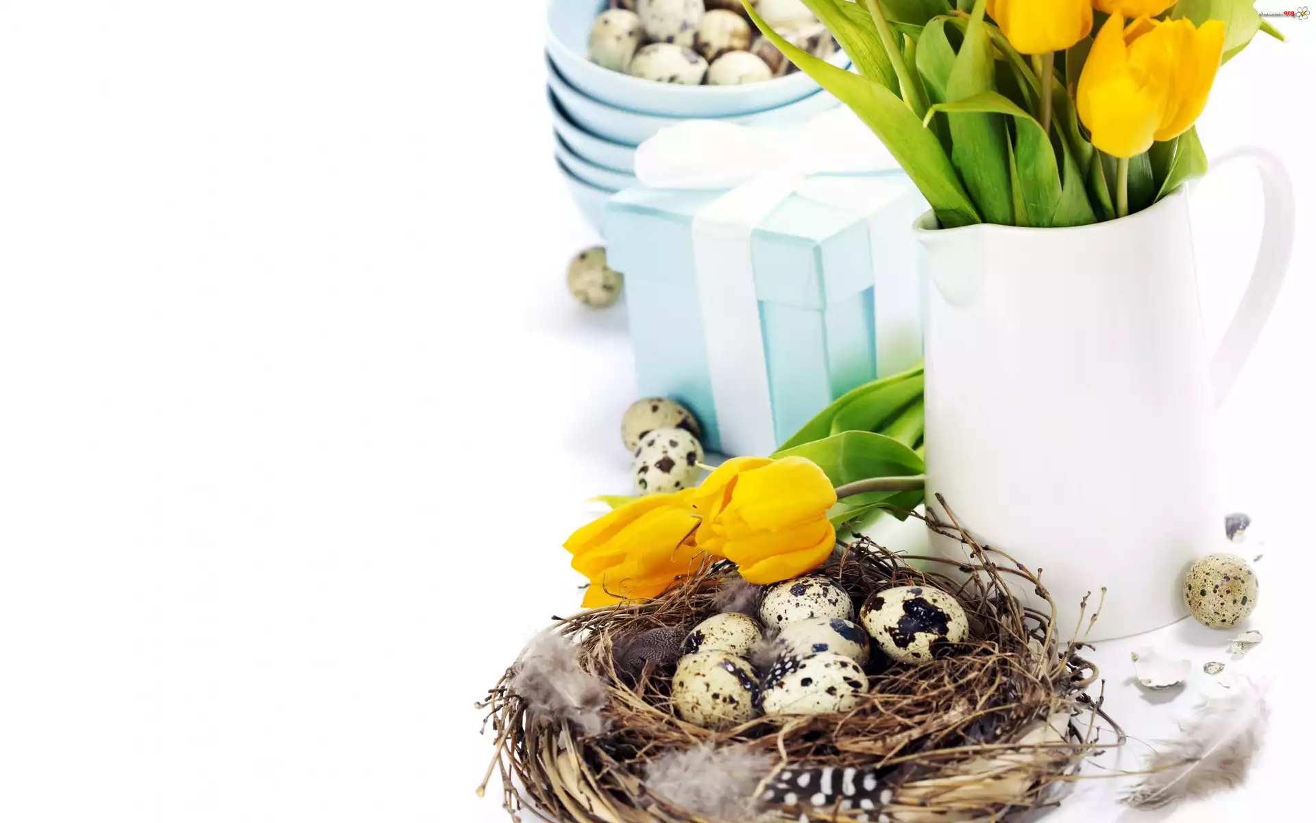 Wielkanoc, Tulipany, Przepiórcze, Jajeczka - Zdjęcia