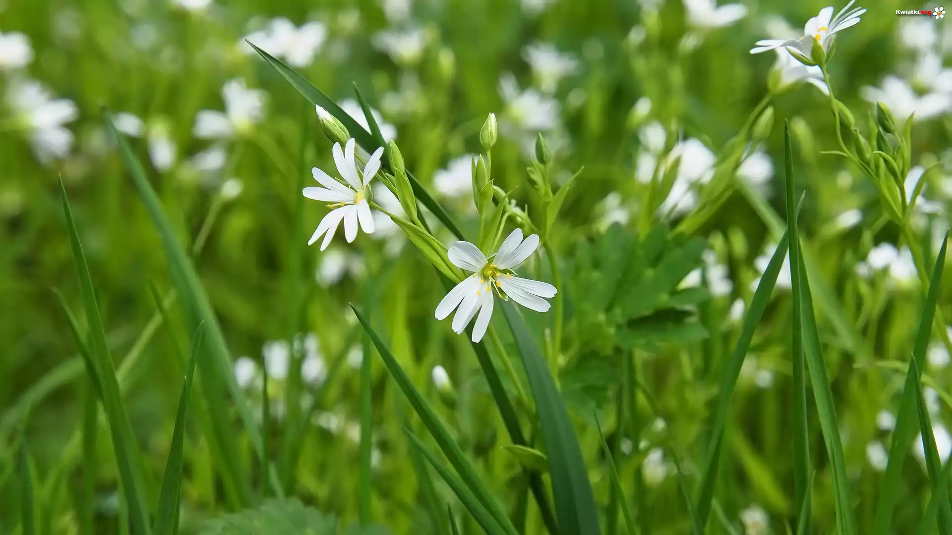 Kwiaty, Białe, Gwiazdnice wielkokwiatowe, Listki, Pąki - Zdjęcia