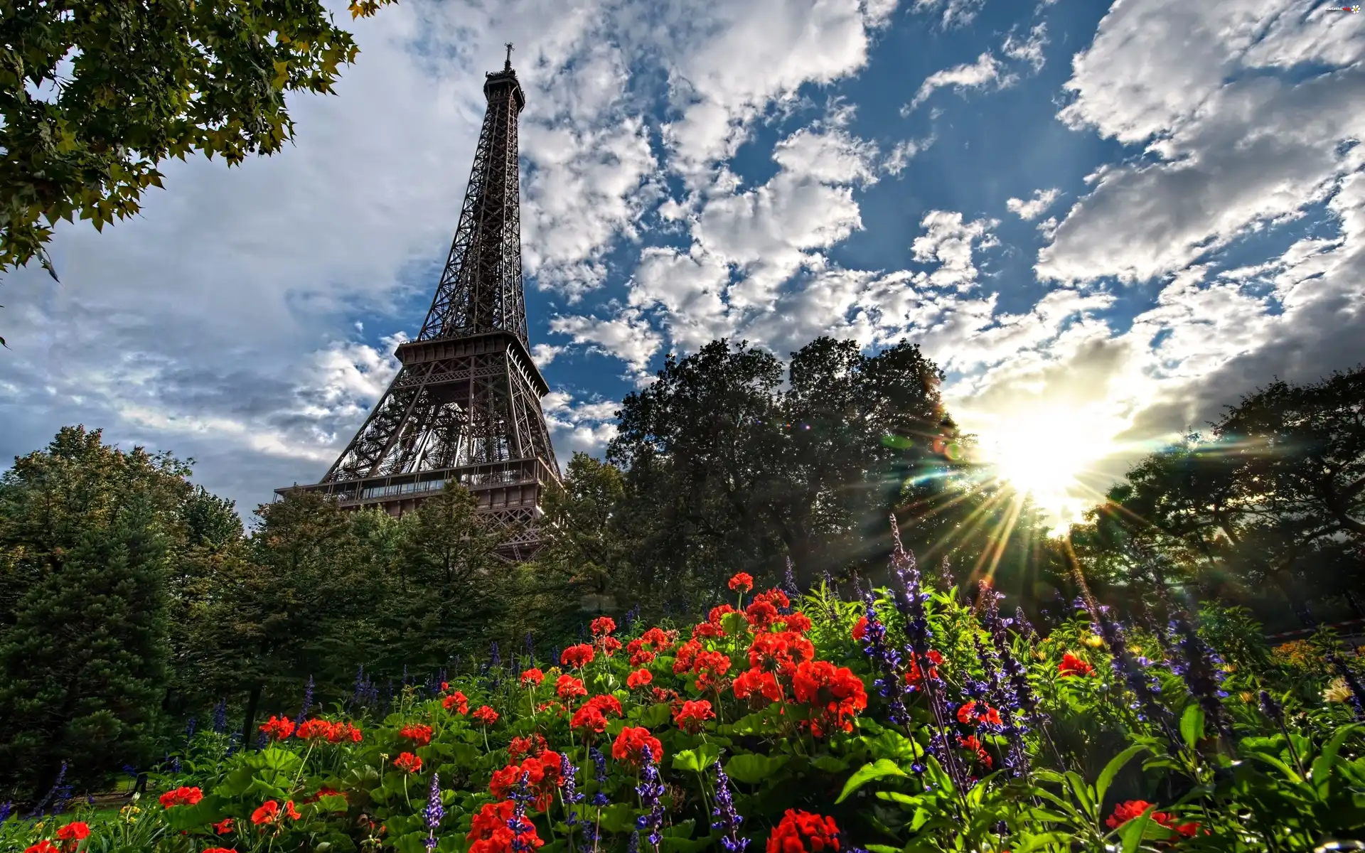 Wieża Eiffla, Kwiaty, Paryż - Zdjęcia