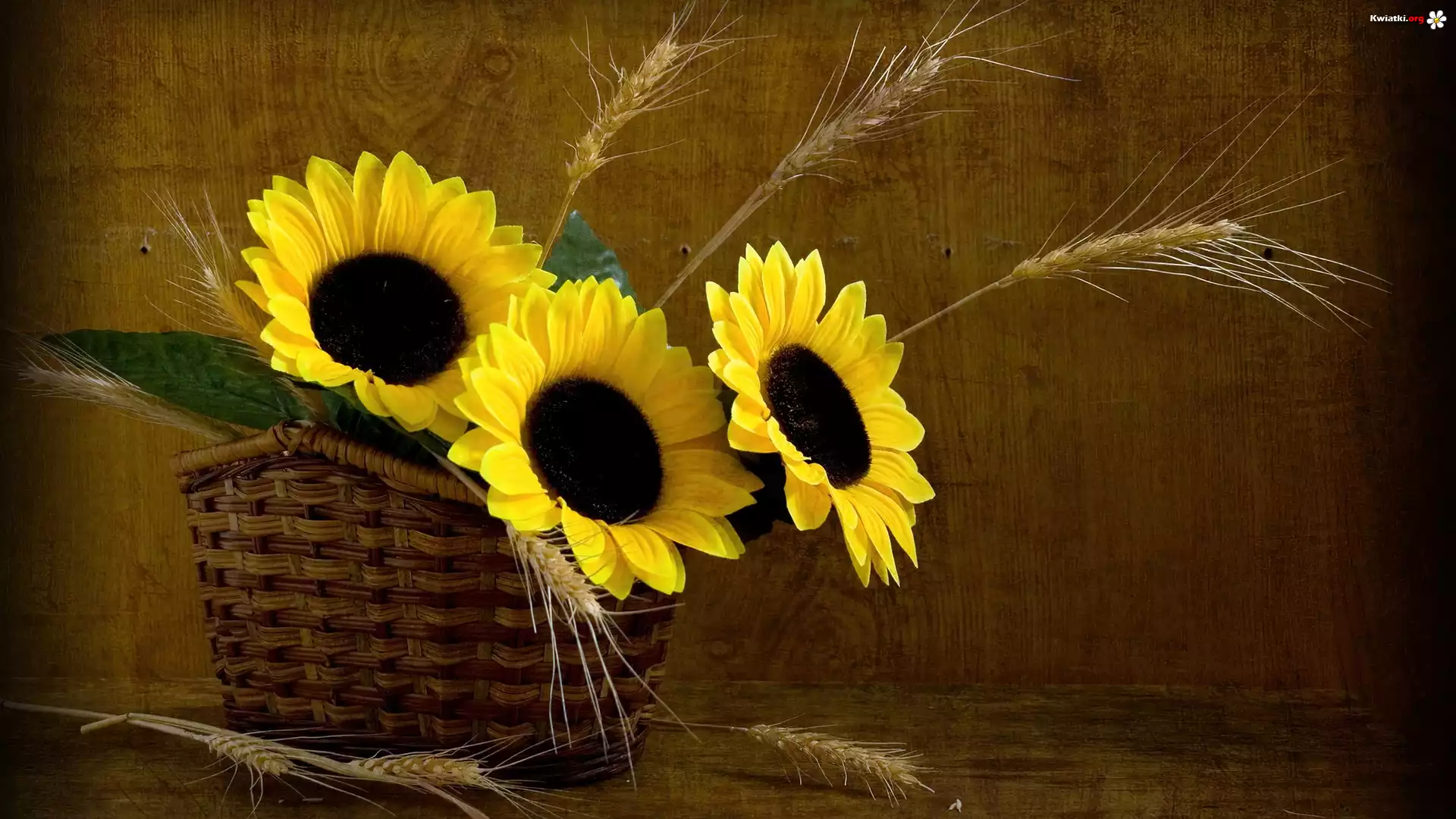 Kwiat Wiklinowy, Kosz, Słoneczniki, Kłosy, Zboża