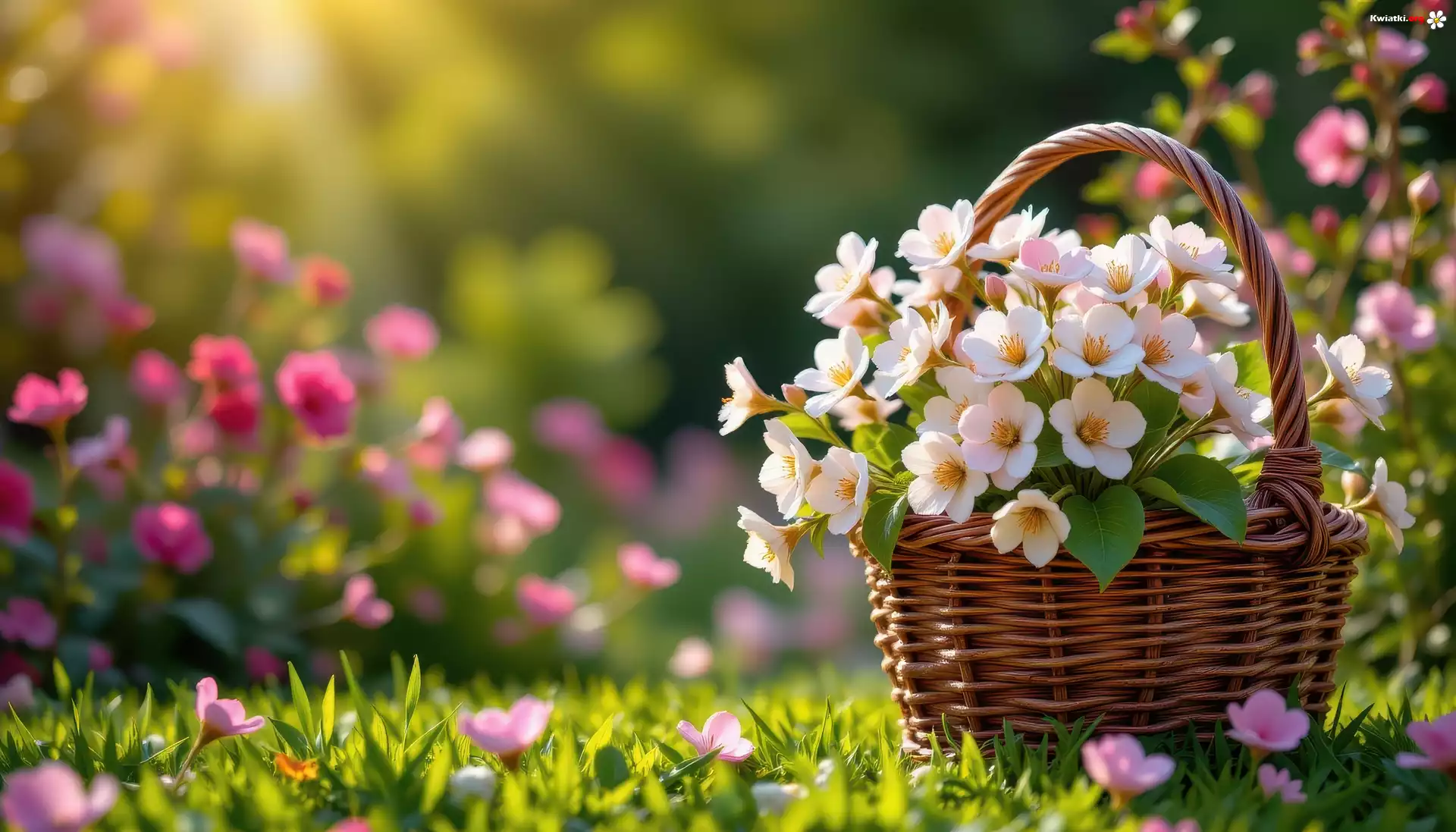 Białe, Różowe, Kwiaty, Wiklinowy, Koszyk, Trawa - Zdjęcia