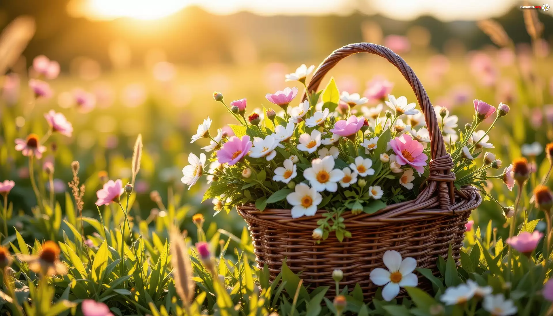 Kwiat Różowe, Białe, Kwiaty, Wiklinowy, Koszyk, Trawa