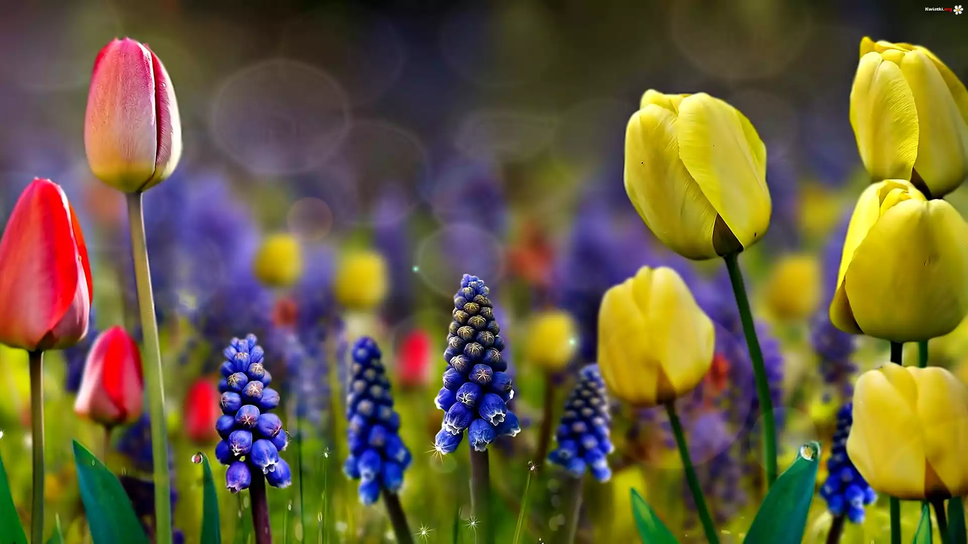 Wiosenne, Kwiaty, Tulipany, Szafirki - Zdjęcia