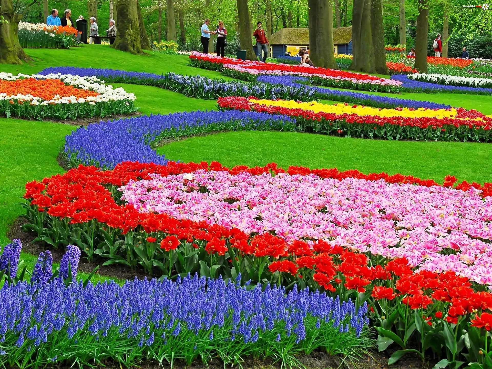 Wiosna, Park, Dywany, Kwiatowe, Spacerowicze - Zdjęcia
