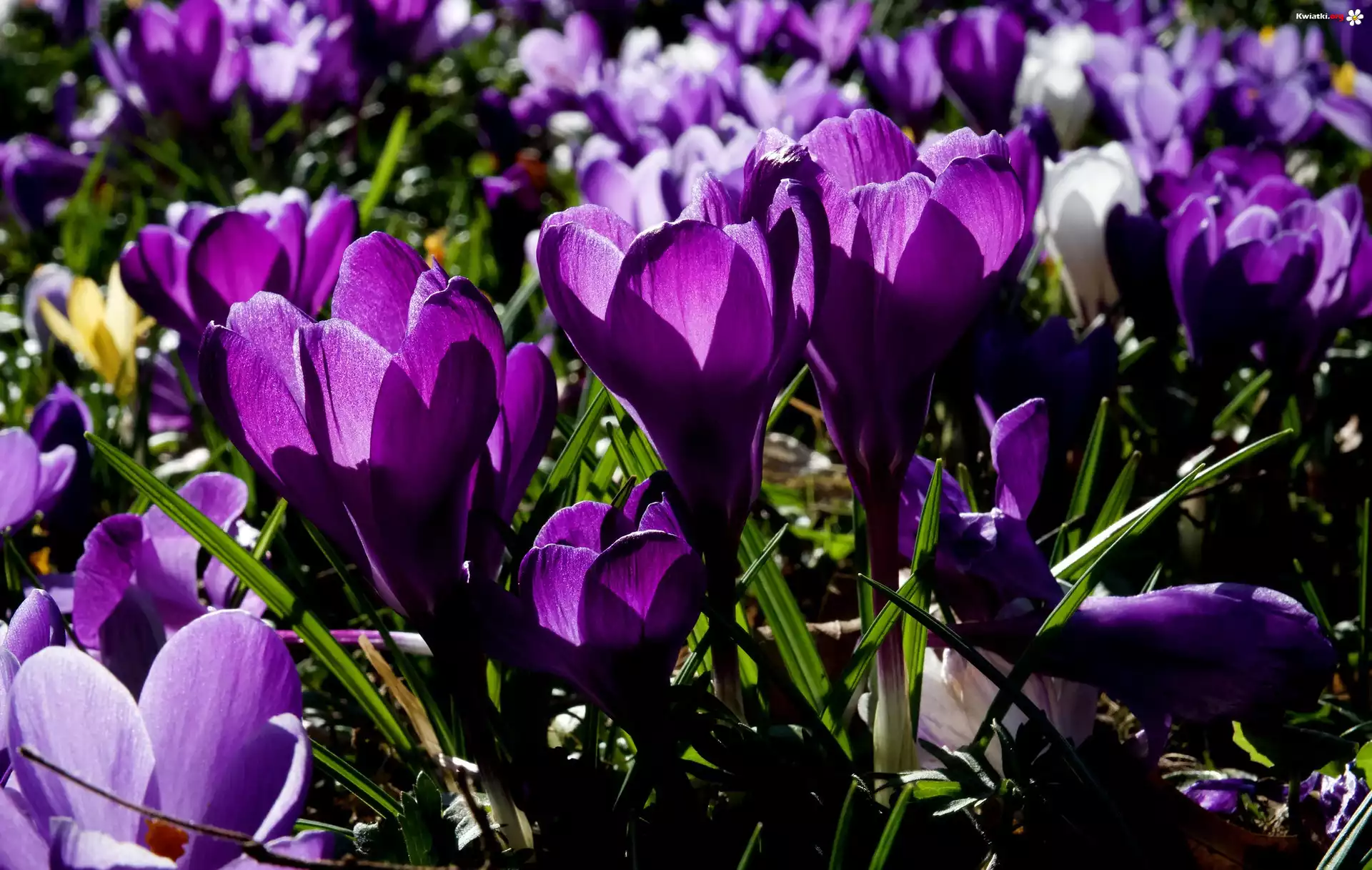 Kwiaty, Rozświetlone, Krokusy, Wiosna - Zdjęcia