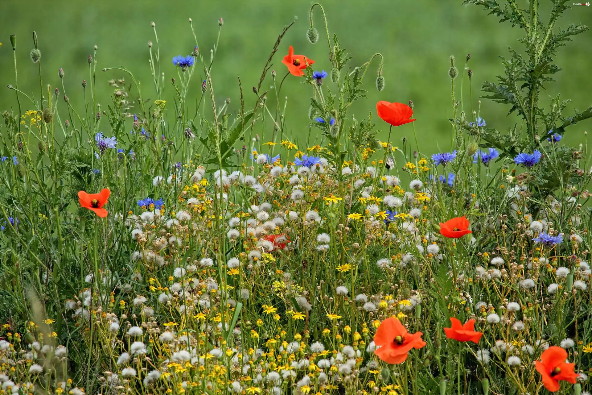 Kwiat Wiosna, Łąka, Maki, Chabry