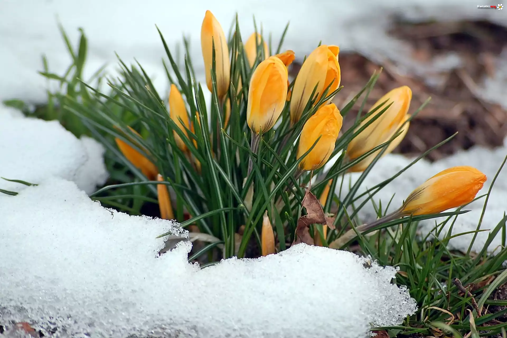 Wiosna, Kępa, Żółtych, Krokusów, Śnieg, Rozmycie - Zdjęcia