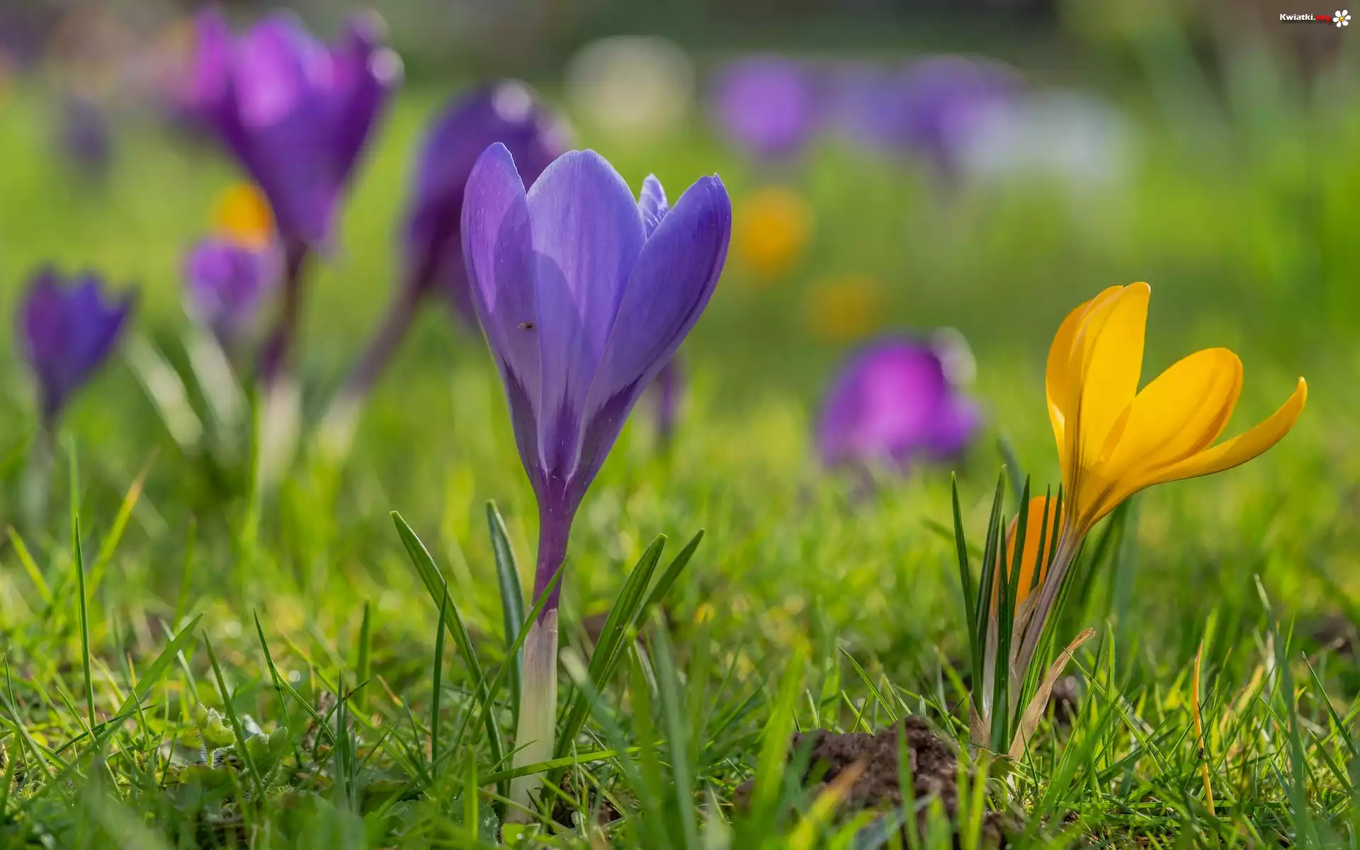 Wiosna, Krokusy, Trawa - Zdjęcia