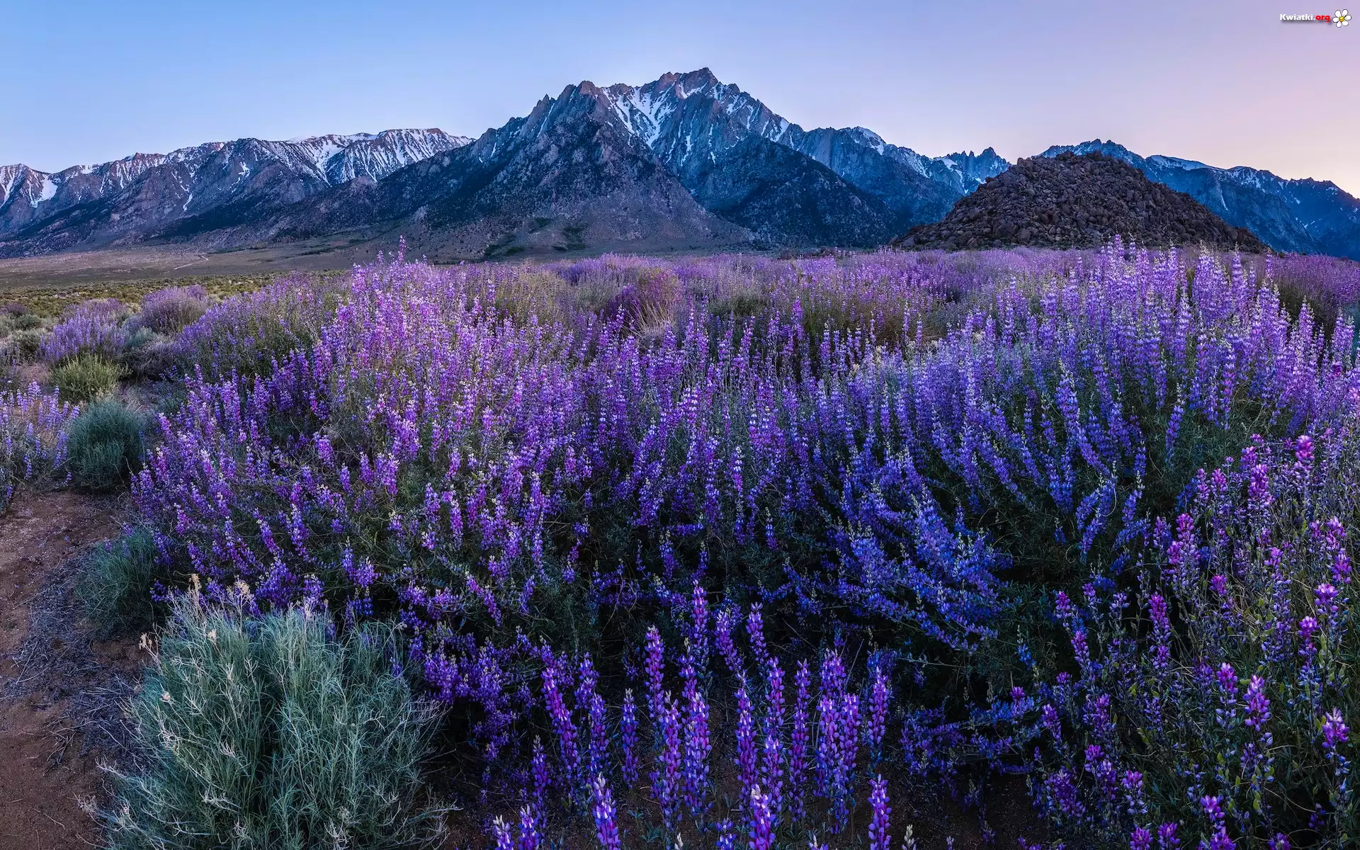 Kwiat Stany Zjednoczone, Kalifornia, Alabama Hills, Mount Withney, Góry, Rośliny, Kwiaty, Łubin