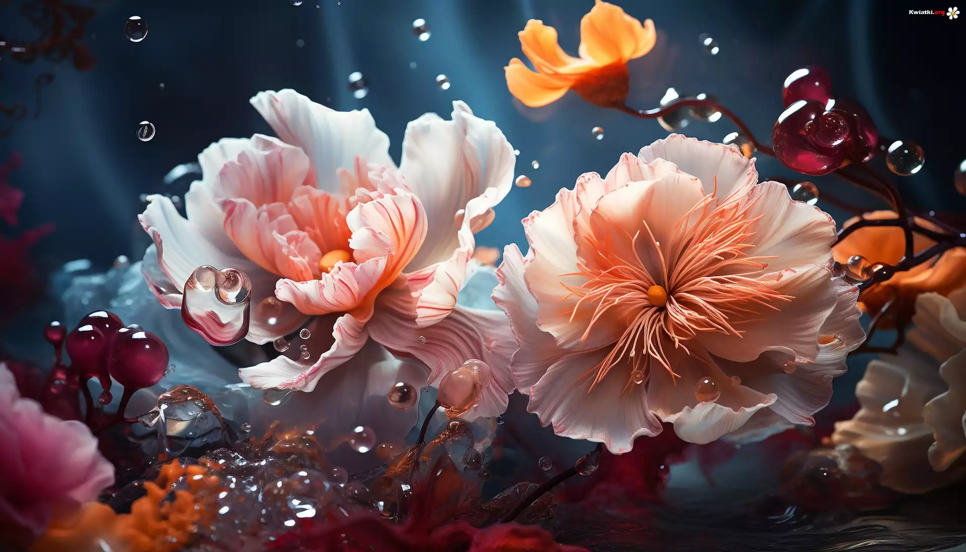 Kwiaty, Woda, Krople, Światło, Grafika - Zdjęcia