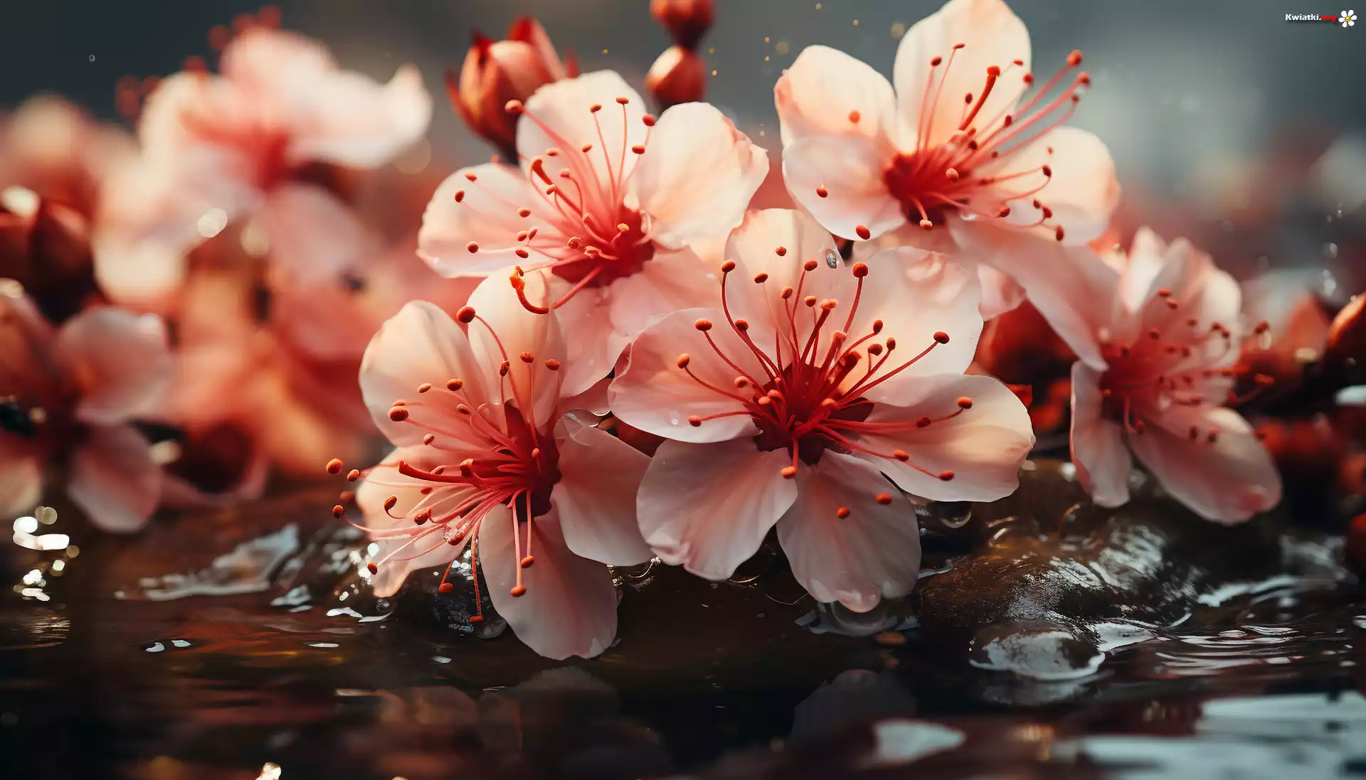 Kwiat Kwiaty, Różowe, Pręciki, Woda