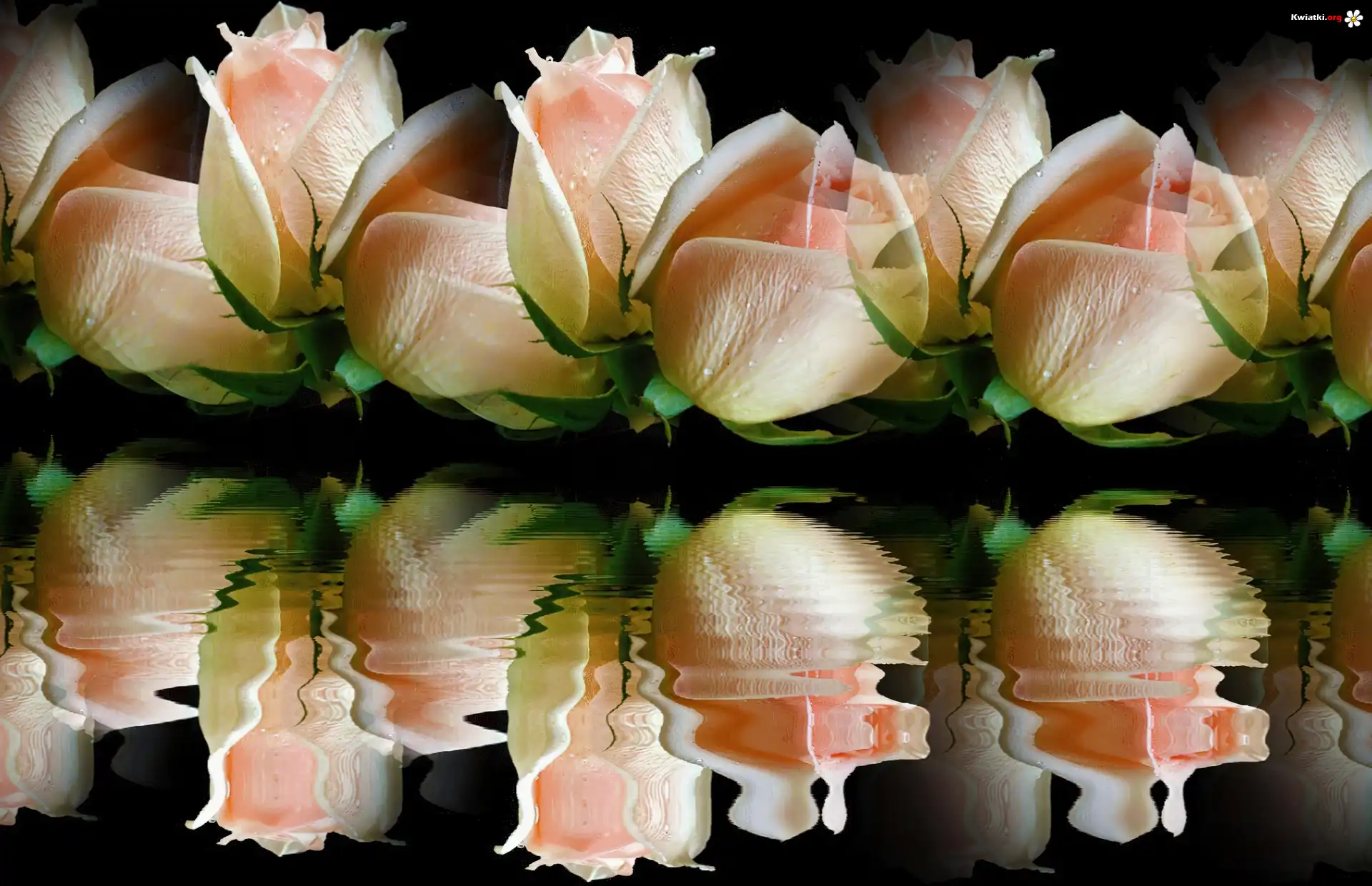 Kwiat Łososiowe, Róże, Woda, Odbicie