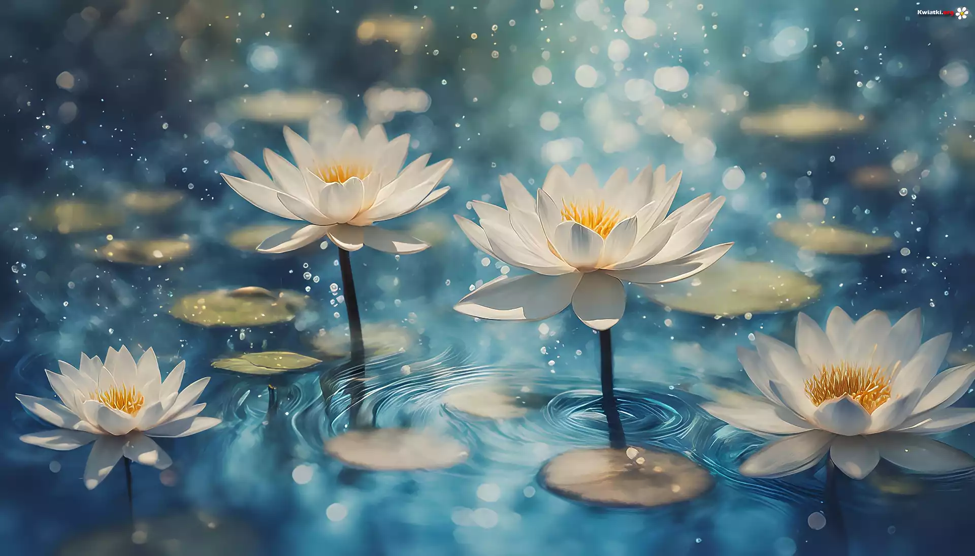Lilie wodne, Białe, Kwiaty, 2D - Zdjęcia