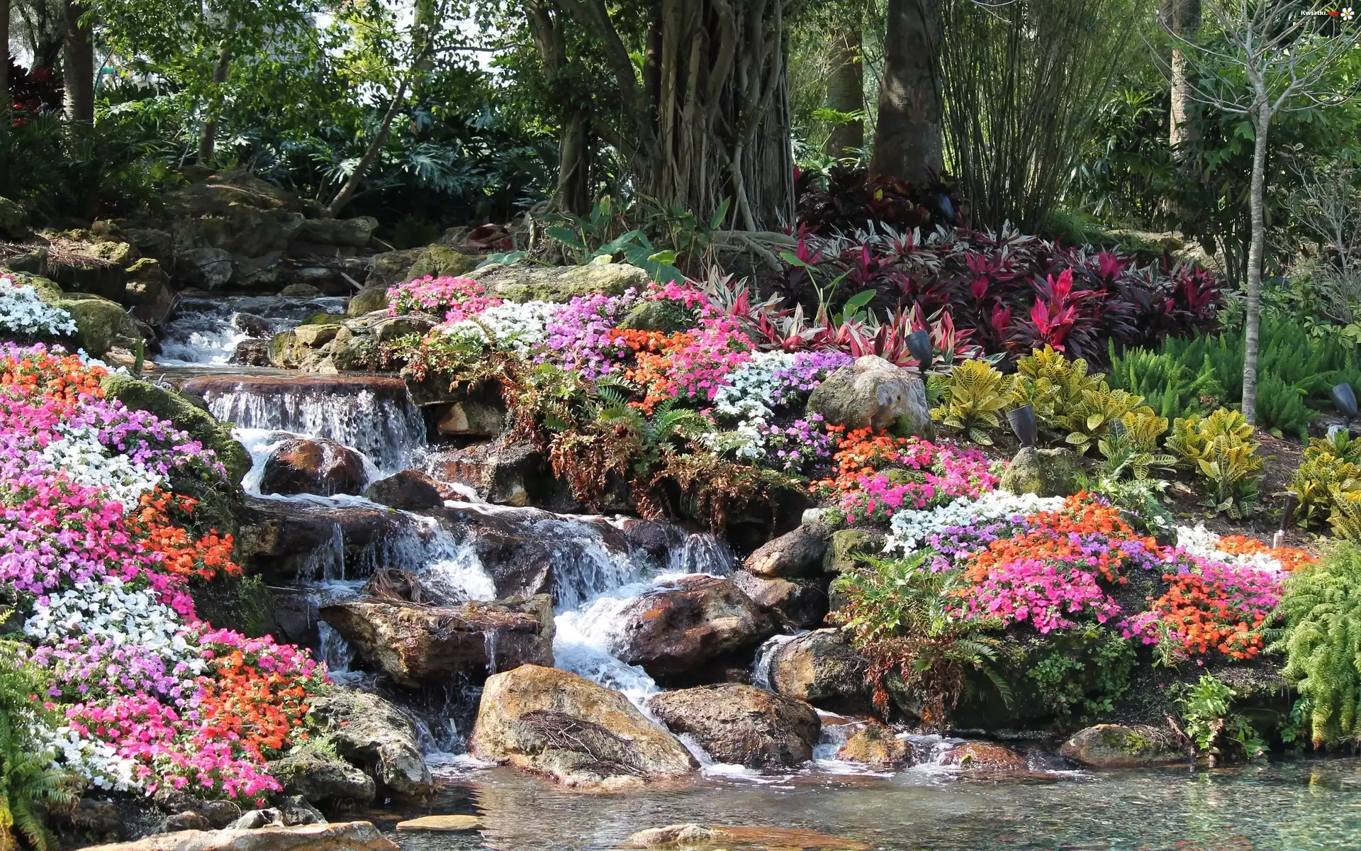 Kwiat Wodospad, Las, Kwiaty, Kamienie