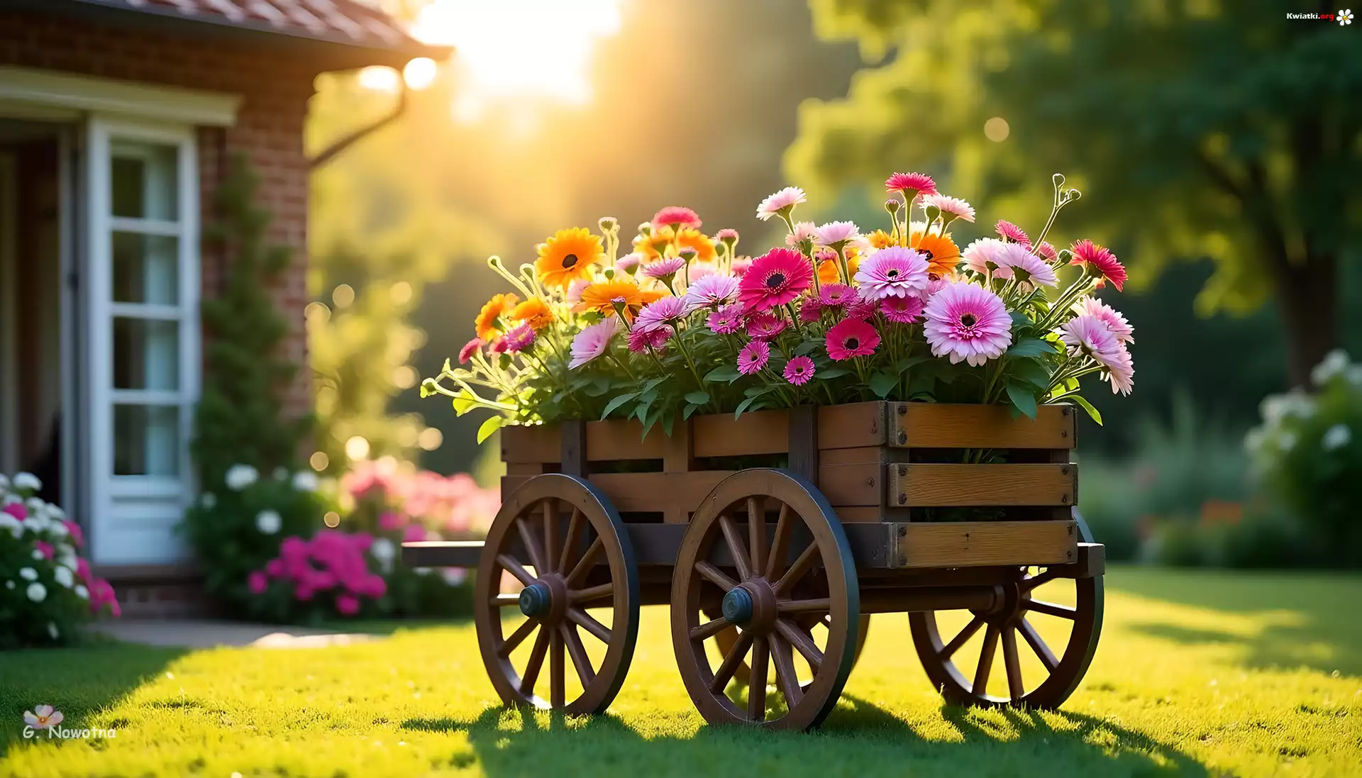 Kwiat Drewniany, Wózek, Kwiaty, Ogród, Grafika