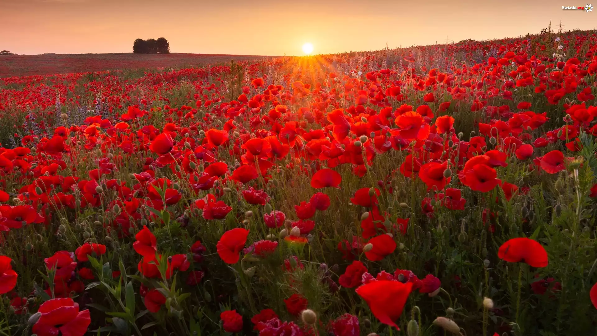 Kwiat Wschód słońca, Łąka, Kwiaty, Maki