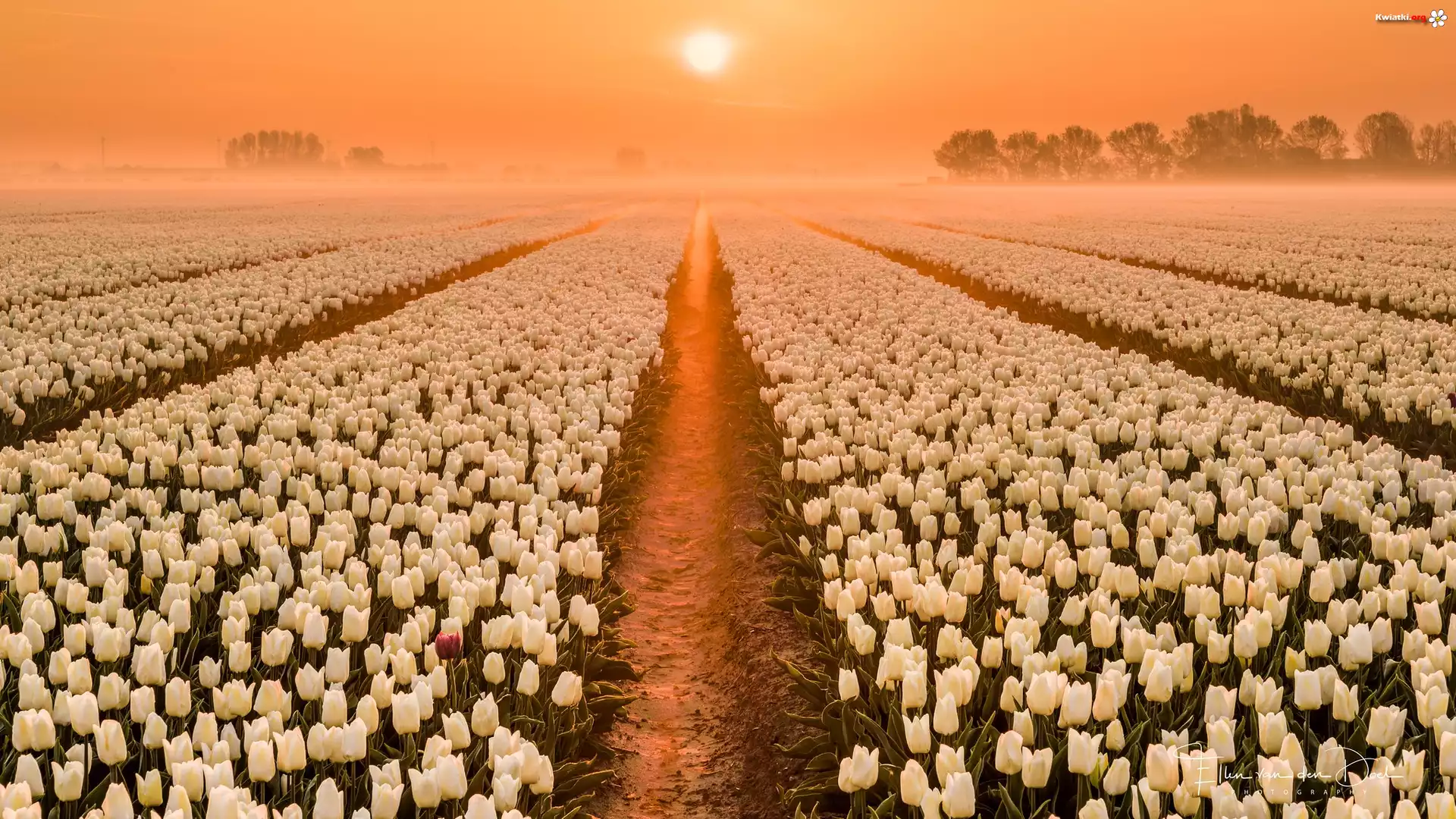 Wschód słońca, Pole, Plantacja, Tulipany - Zdjęcia