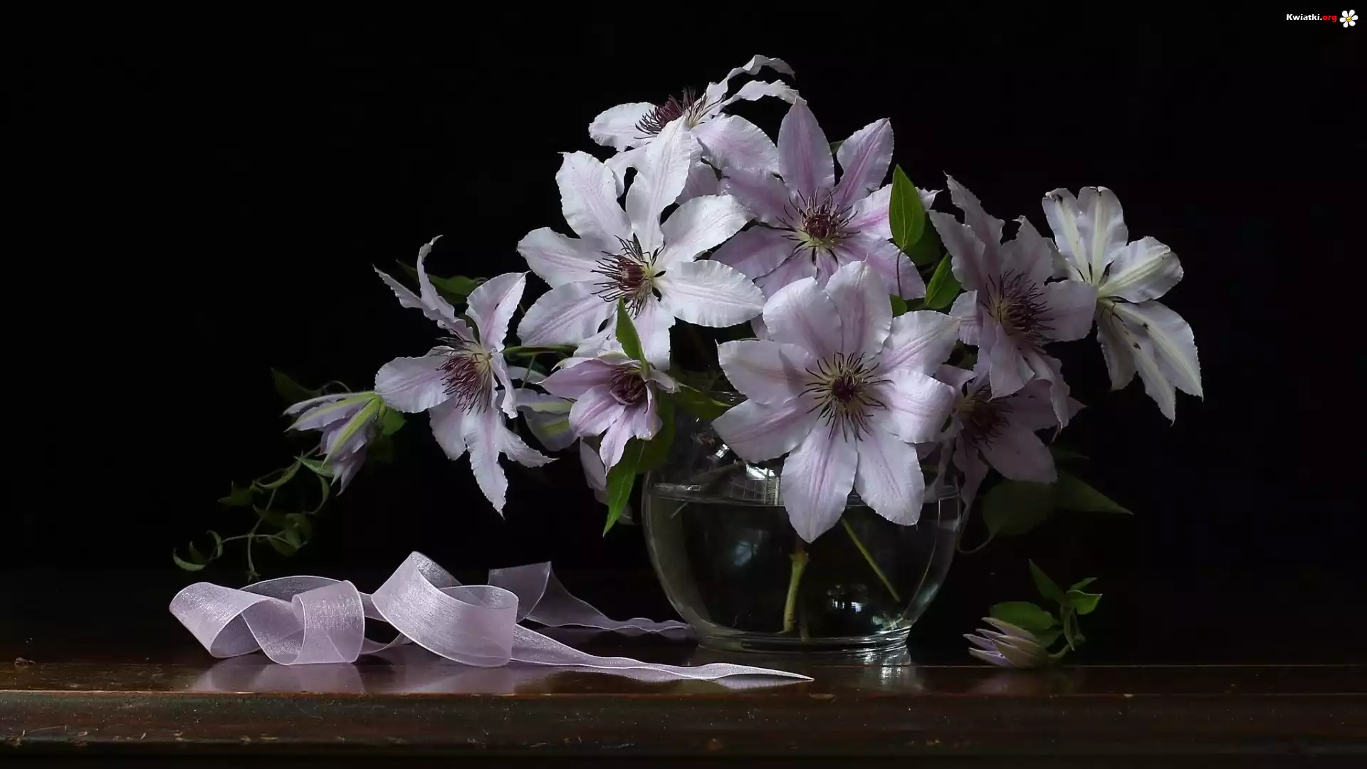 Kwiat Powojniki, Kwiaty, Wazon, Wstążka