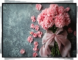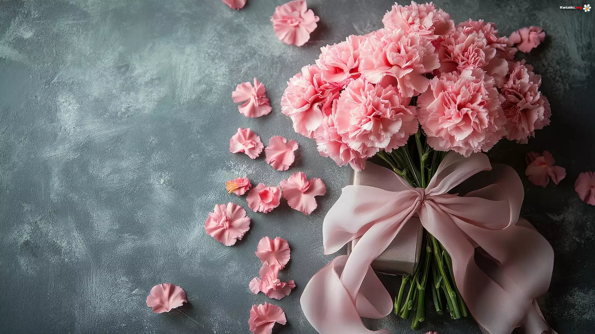 Kwiat Kwiaty, Goździki, Wiązanka, Wstążka, Kokarda, Prezent